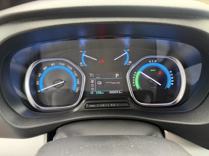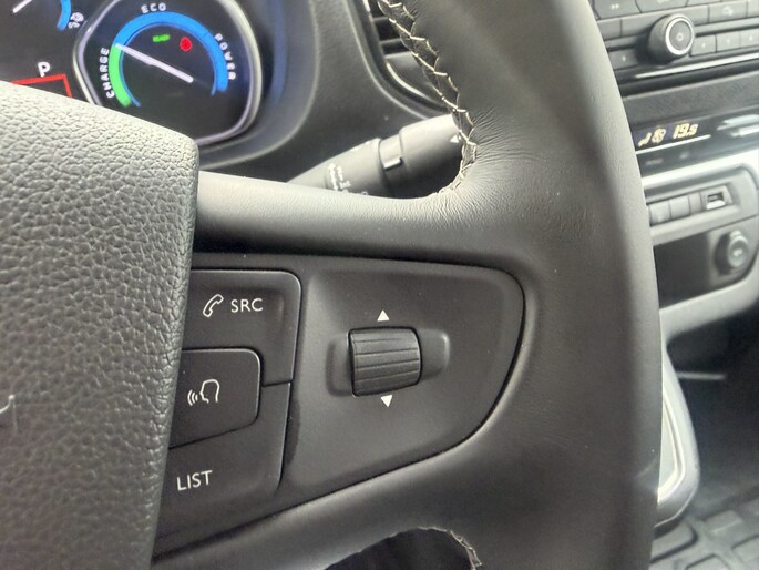 Geavanceerde systemen kunnen tijdens de rit bepaalde taken van u overnemen. Zo kijken er als het ware steeds extra ogen met u mee, zodat u tijdig kunt reageren op noodsituaties. De camera van de verkeersborddetectie herkent verschillende soorten verkeersborden en toont deze op het dashboard. Deze Citroën ë-Jumpy is ook behulpzaam als het gaat om een rechte koers. Het Lane-keeping systeem signaleert en corrigeert als u onbedoeld de rijstrooklijnen dreigt te overschrijden. Een belangrijk veiligheidssysteem in deze auto is de vermoeidheidsherkenning, die u een duidelijk signaal geeft wanneer u achter het stuur in slaap dreigt te vallen. Dankzij veiligheidsvoorzieningen als hill hold functie, brake assist en bandenspanningcontrolesysteem, bent u steeds veilig onderweg.
