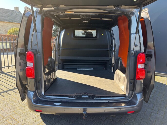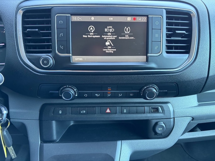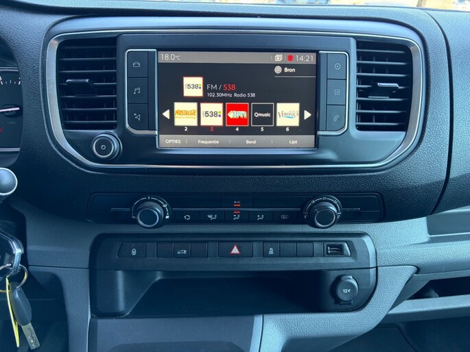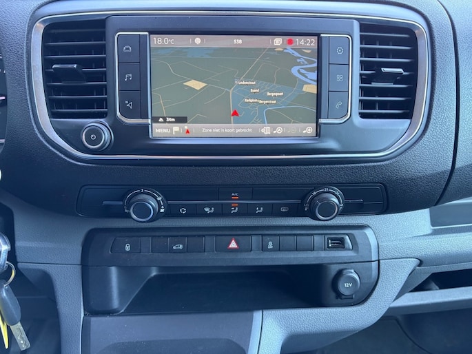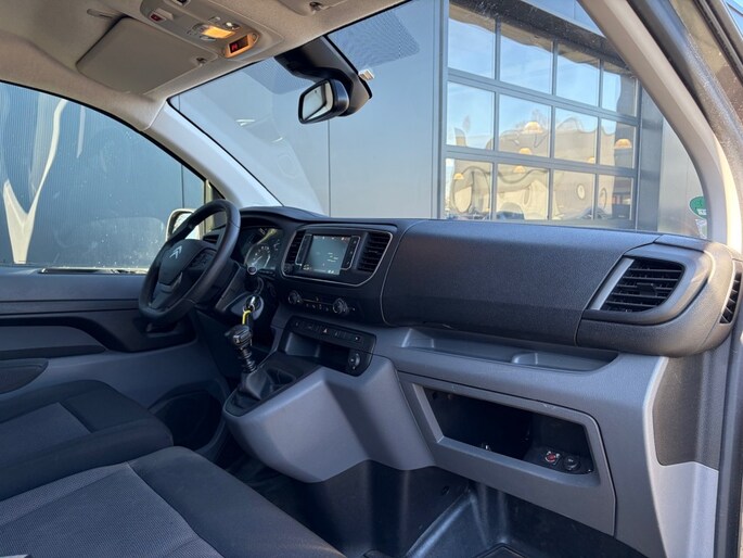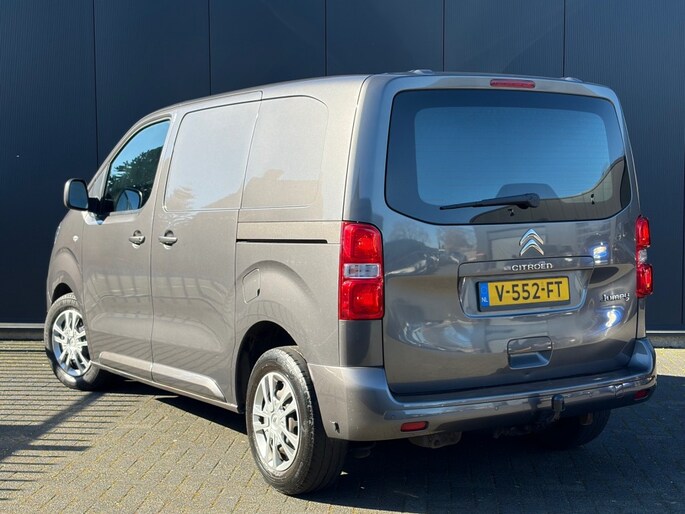 Keurige Nederlandse Citroen Jumpy 2.0 HDI 3-zits voorzien van navigatie full map, Apple Carplay, airco, cruise control, 2x Schuifdeur, achterklep met ruit, parkeersensoren, armsteun, bluetooth, USB en trekhaak.
