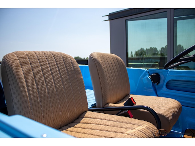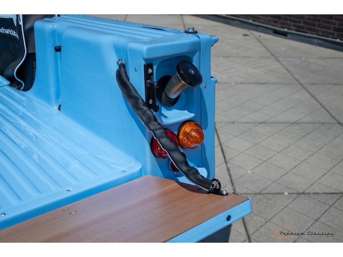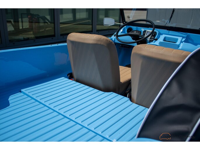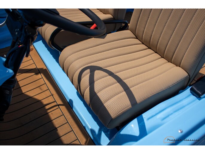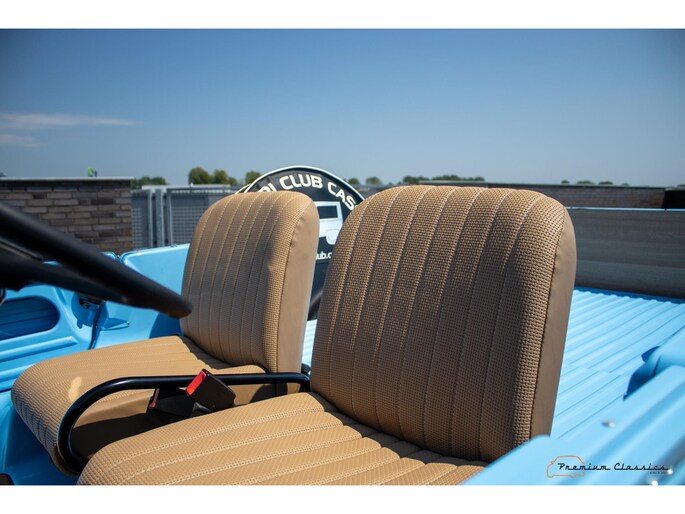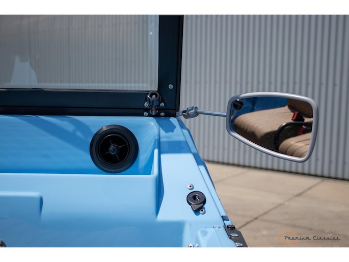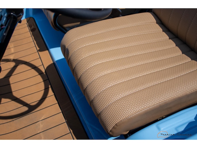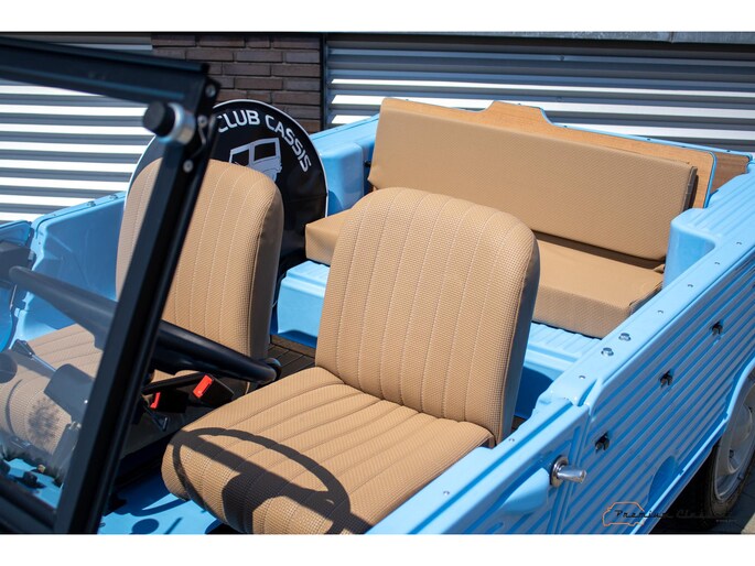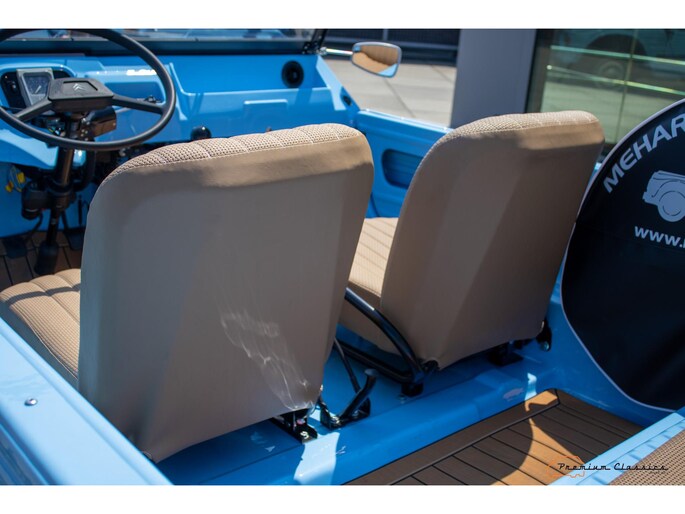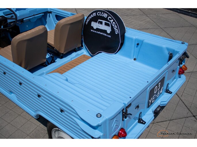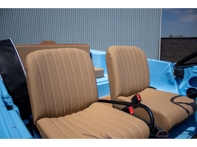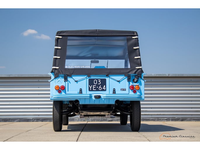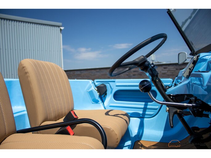 With an ABS plastic body, the Mehari weighs just over 500 kg. Despite the small 602cc 2-cylinder, the car feels relatively quick and the Mehari puts a smile on your face every time. Discover it now in our showroom in Boxtel!