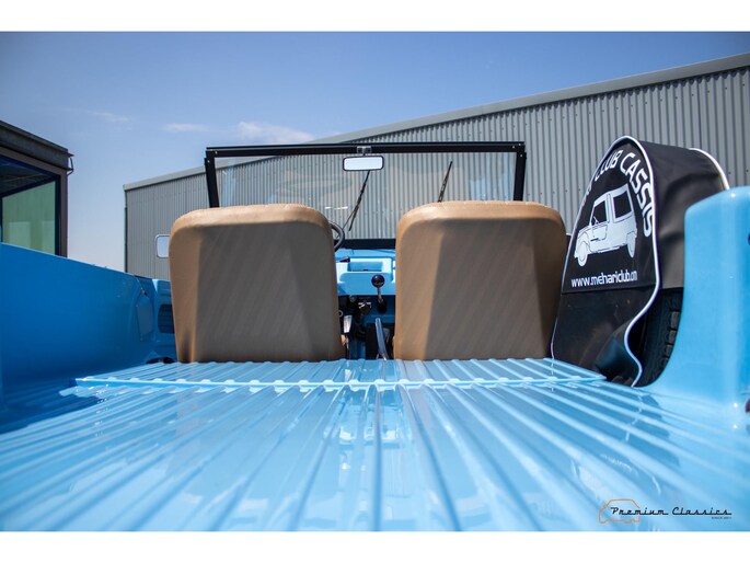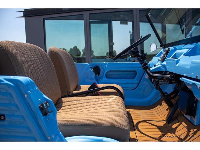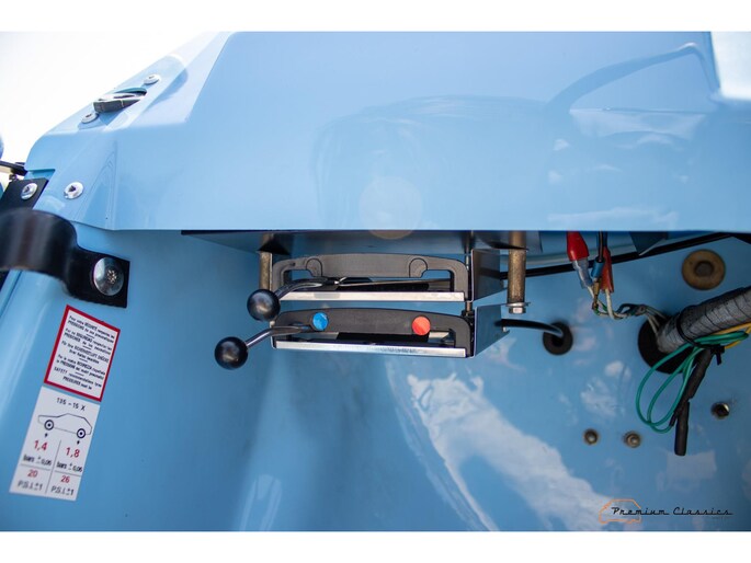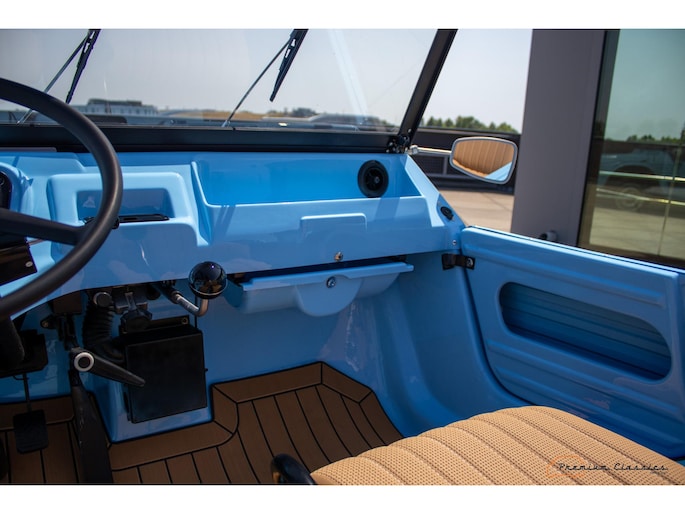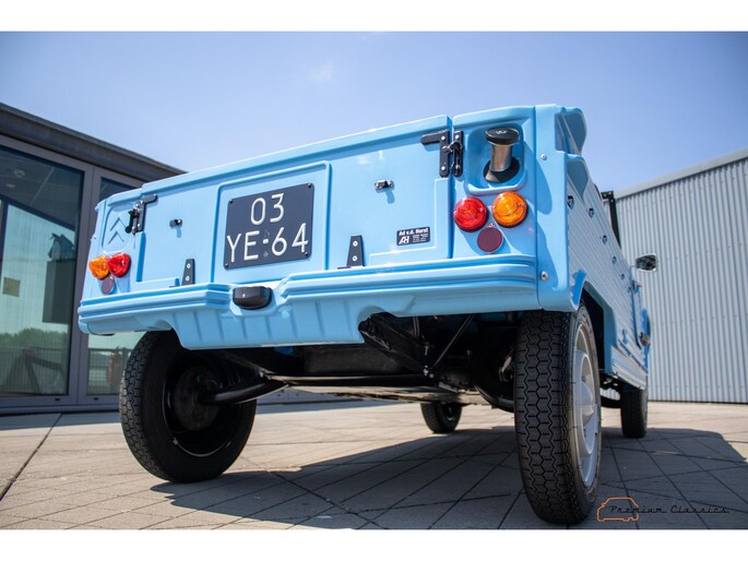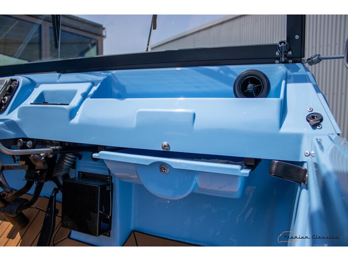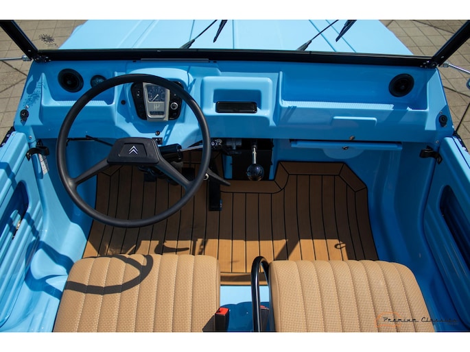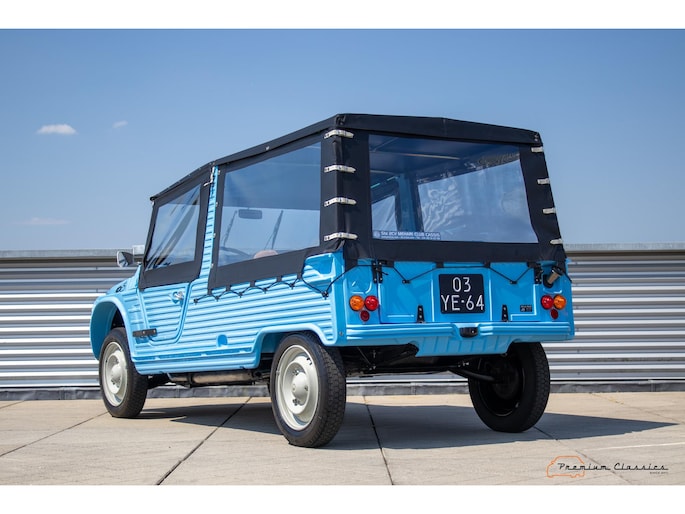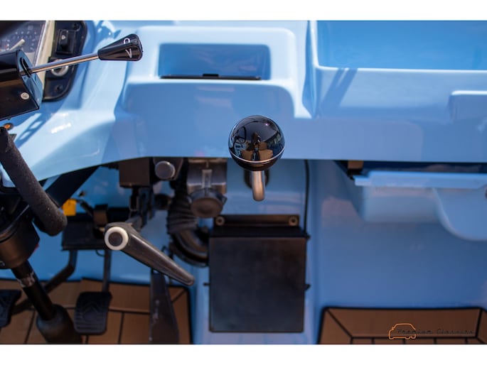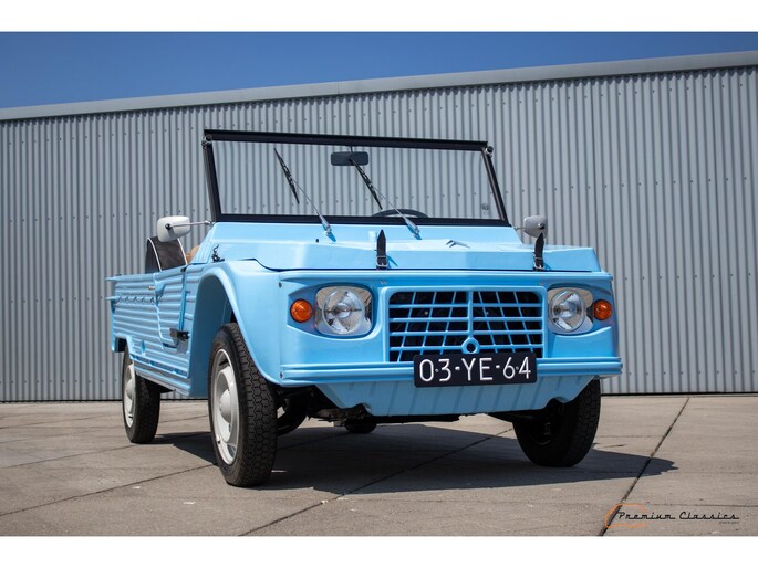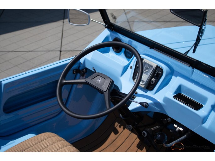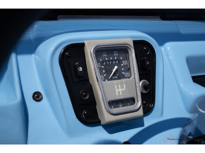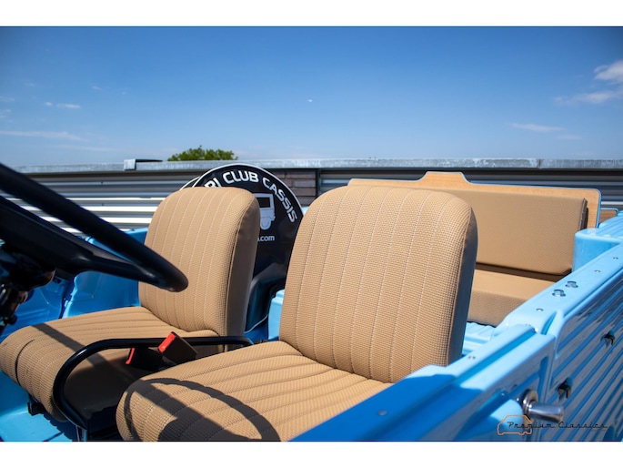 With an ABS plastic body, the Mehari weighs just over 500 kg. Despite the small 602cc 2-cylinder, the car feels relatively quick and the Mehari puts a smile on your face every time. Discover it now in our showroom in Boxtel!