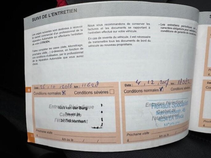 Onderhoudsboekjes: Aanwezig
