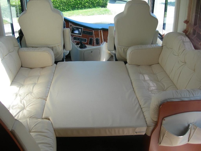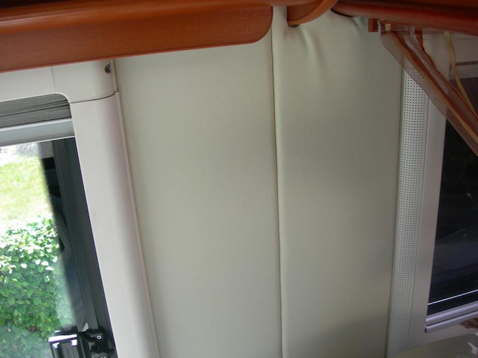 De volledige stofbekleding aan wand en dak is vervangen door wit lederen panelen 2024