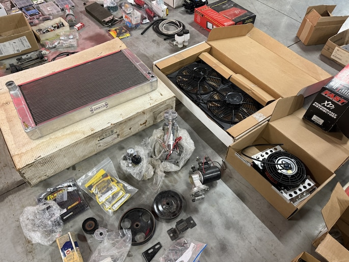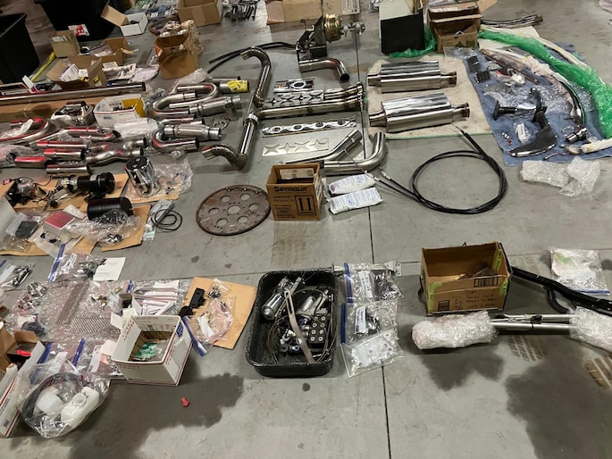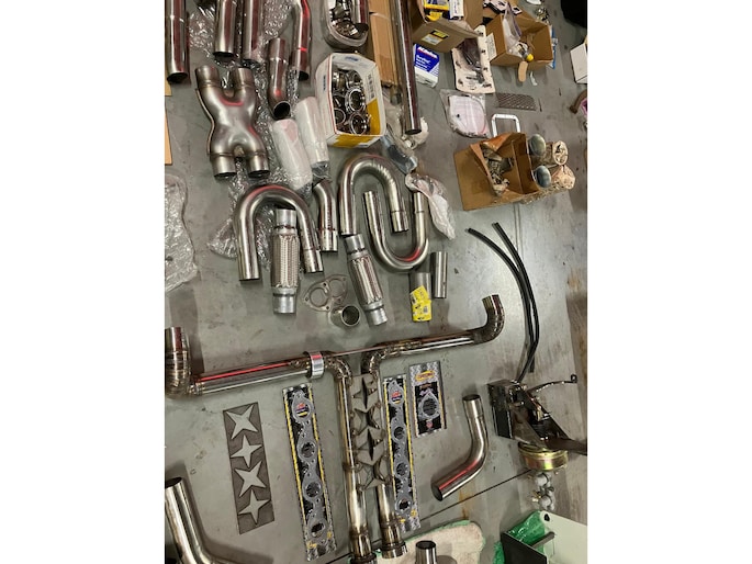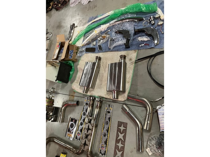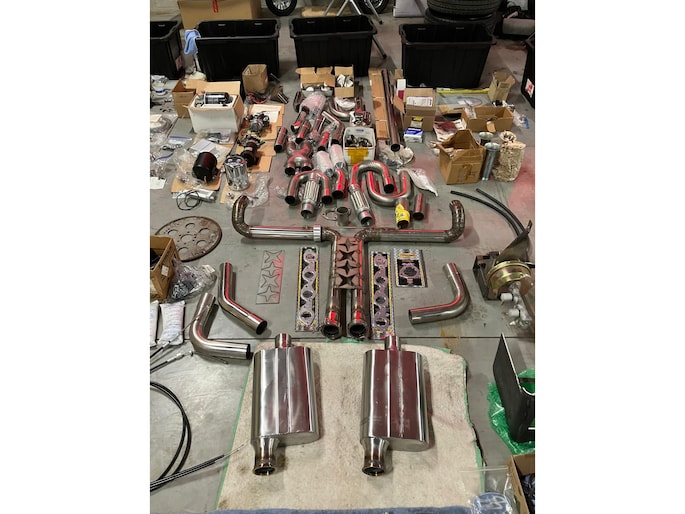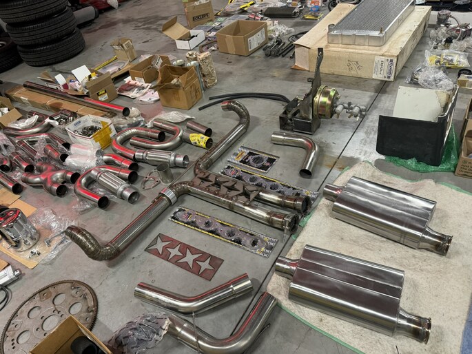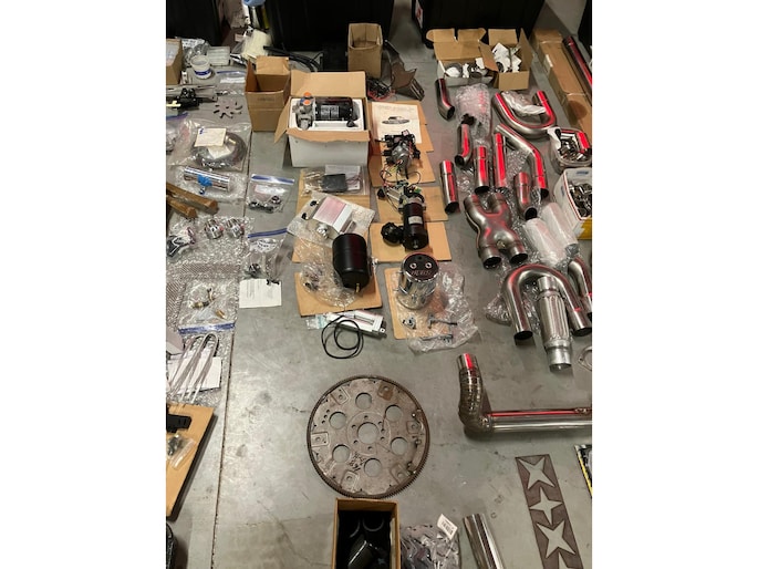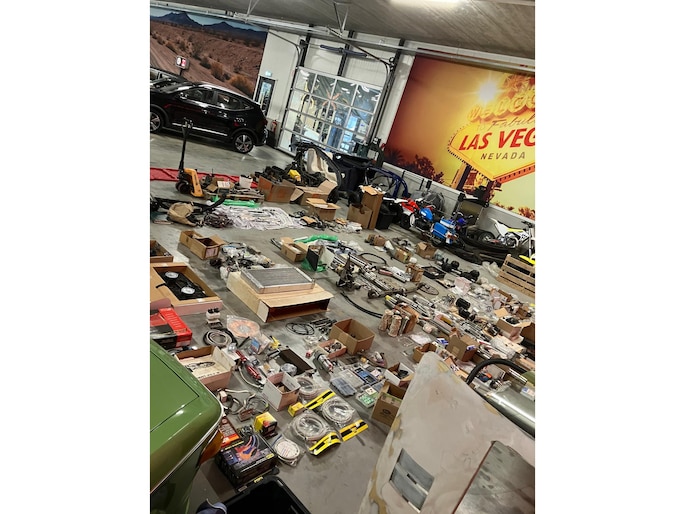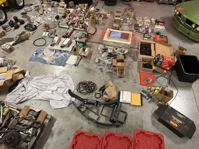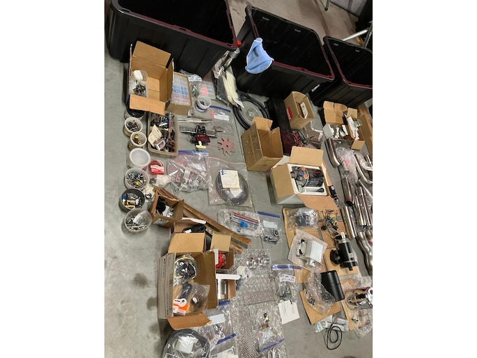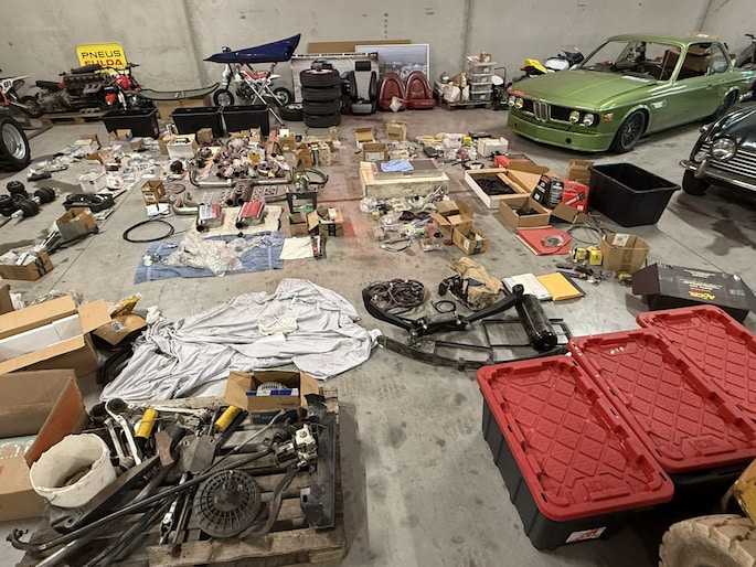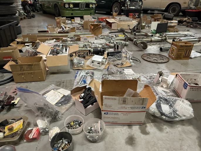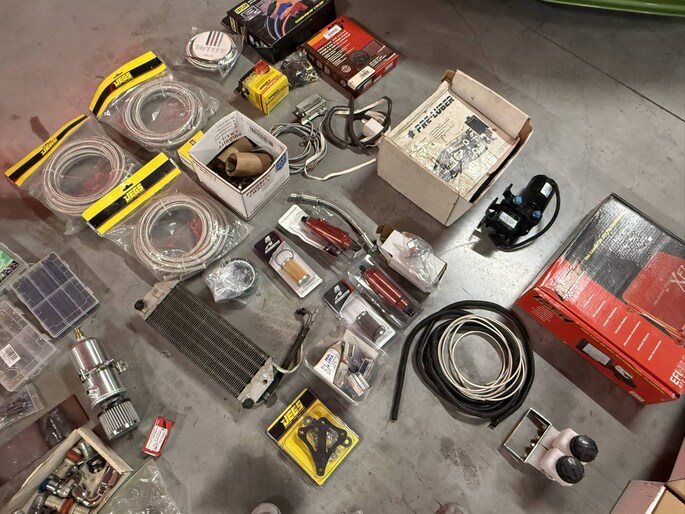 Naast de auto is er zoals te zien is een schatkamer vol aan onderdelen bij. Meeste onderdelen zitten in maar liefst 8 kratten verpakt.