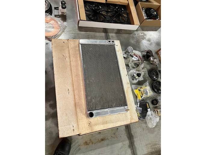 Koeling gebeurt met een Evans aluminium radiateur en elektrische ventilatoren van Jegs.