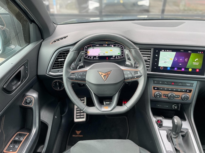 De CUPRA Ateca 2.0 TSI 4DRIVE combineert sportiviteit met dagelijkse veelzijdigheid. Dankzij de krachtige 2.0 TSI-motor en het 4DRIVE vierwielaandrijvingssysteem levert hij indrukwekkende prestaties met maximale grip onder alle omstandigheden. Deze CUPRA Ateca is voorzien van vele extra optie's waaronder: kuipstoelen/Maxton bumper/spoiler pakket/verlaagd/Brembo remsysteem/front camera /carbon spiegels en dynamic light.