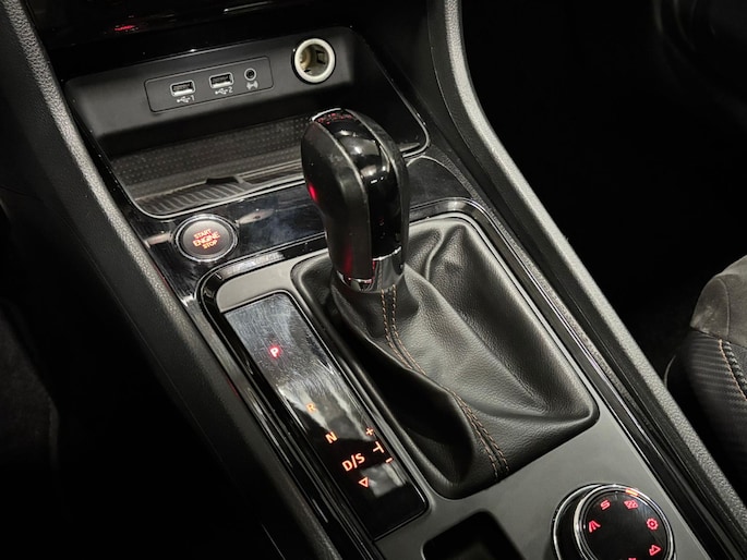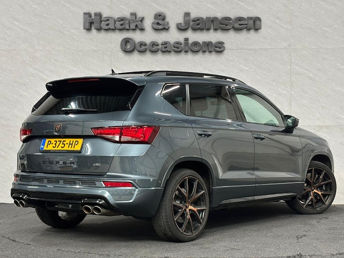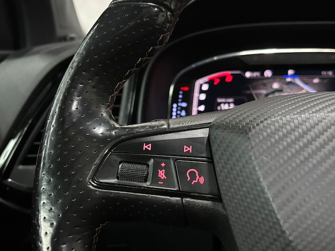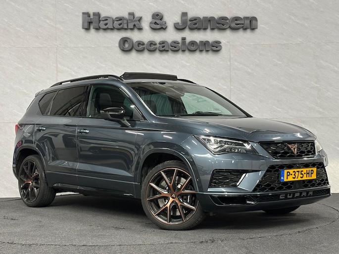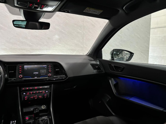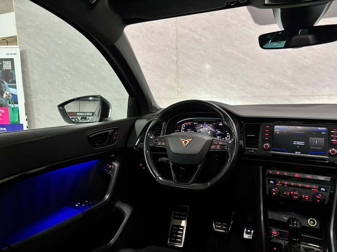 Wie zei daar dat er geen emotie meer in auto's zit? Achter het stuur van deze Cupra Ateca kunt u het nog steeds ervaren, kilometer na kilometer. De krachtige motor geeft deze Cupra uitstekende prestaties. Maximaal comfort en stijl krijgt u dankzij het lederen interieur. Koude start? Niet met de verwarmbare voorstoelen! Natuurlijk zijn de sportstoelen super functioneel als het rechterpedaal ingetrapt wordt. Maar ook voor het uiterlijk doen ze veel! Dat noemen ze nou een ruimtelijk effect: het elektrisch bediende glazen panoramadak. De achterklep opent automatisch met een druk op de knop. Handig als u met volle handen staat. Bij de zeer complete uitrusting van deze auto behoren ook LED koplampen, sportonderstel, dakspoiler, extra getint glas, in delen neerklapbare achterbank en LED-achterlichten.