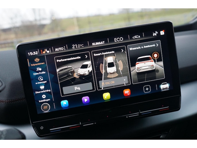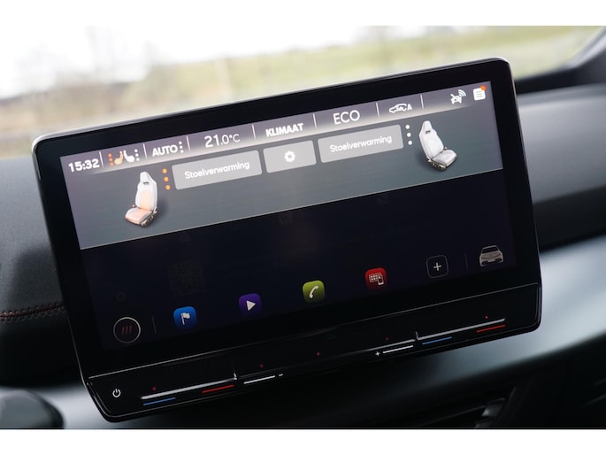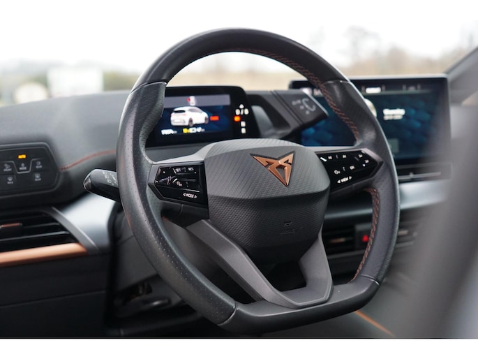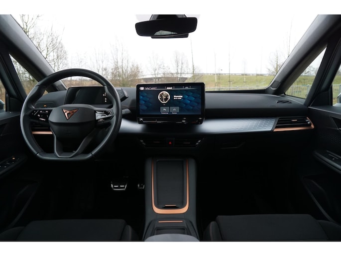 Deze auto nodigt u uit om plaats te nemen achter het sportstuur en onmiddellijk de weg op te gaan. Bestuurder en bijrijder krijgen een warm welkom: deze Cupra Born is voorzien van verwarmbare voorstoelen. Stevig ondersteund door de sportstoelen blijft u bij elke beweging op uw plek. Fijn plusje, zeker in de kille dagen, is het verwarmd stuurwiel. Bij de zeer complete uitrusting van deze auto behoren ook LED koplampen, sportonderstel, extra getint glas, in delen neerklapbare achterbank, LED-achterlichten en verwarmde ruitensproeiers.
