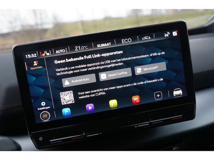 Het digitale dashboard geeft een nauwkeurig en makkelijk overzicht van alle belangrijke functies. Alles vrij achter? De achteruitrijcamera laat het meteen zien. Met adaptive cruise control houdt de auto zelfstandig afstand tot uw voorligger. Een veiligheidsverhogende optie waarmee u comfortabel onderweg bent. Vergeten af te sluiten? Bandenspanning onvoldoende? De speciale app geeft u direct een seintje met behulp van Connected Services. Een goede veiligheidsvoorziening is de spraakbediening en stuurbediening voor belangrijke functies. De auto is natuurlijk voorzien van een navigatiesysteem en het audiosysteem biedt glasheldere geluidskwaliteit dankzij DAB-ontvangst. De Cupra is standaard voorzien van: automatische airconditioning, draadloos opladen, regensensor, keyless entry en automatisch dimmende binnenspiegel.