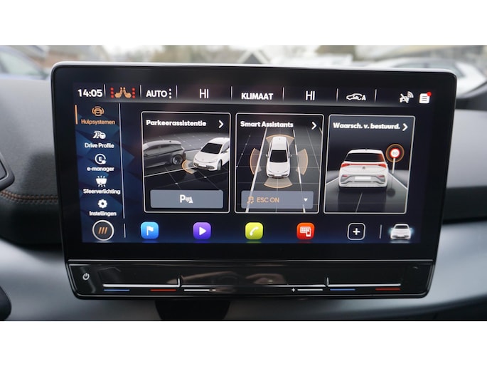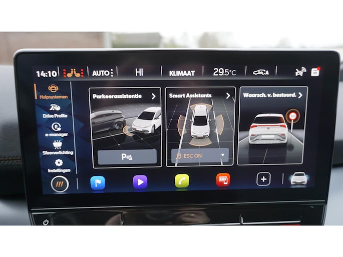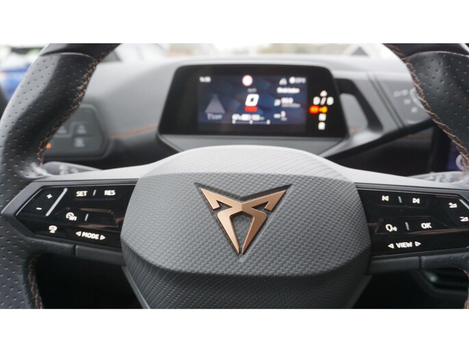 Zoals u mag verwachten van deze Cupra Born is hij uitgerust met een reeks aan actieve veiligheidssystemen. Verkeersborddetectie herkent tijdelijke en permanente verkeersborden langs en boven de weg. Keep your lane? Het Lane-keeping systeem zorgt er automatisch voor. In een noodsituatie waarschuwt forward collision warning bij een dreigende aanrijding met een voorligger. De auto is ook uitgerust met accident avoidance system, vermoeidheidsherkenning, frontale botsbescherming en bandenspanningcontrolesysteem.