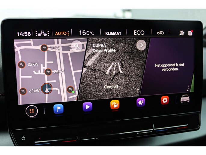 Het interieur van de Cupra Born is ontworpen met het oog op gebruiksgemak en connectiviteit. Het USB-laadpunt met 2-voudige Type C-aansluiting voor de 2e stoelrij zorgt ervoor dat passagiers hun elektronische apparaten kunnen opladen terwijl ze onderweg zijn. Daarnaast biedt de aandrijfslipregeling (ASR) extra grip op de weg, waardoor de bestuurder met vertrouwen kan rijden, zelfs onder uitdagende omstandigheden.