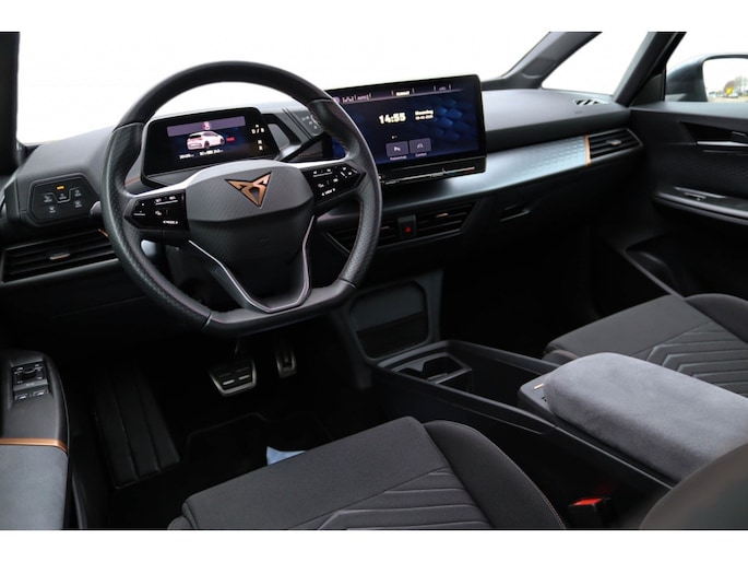 De Cupra Born is voorzien van een aantal indrukwekkende opties die het comfort en de veiligheid van de bestuurder en passagiers verhogen. De dakbekleding in zwart zorgt voor een luxe uitstraling van het interieur, terwijl de ambienteverlichting LED een sfeervolle ambiance creëert tijdens het rijden. Met het rijassistent-systeem Rijprofielselectie (CUPRA Drive Profile) kan de bestuurder eenvoudig de rijmodus aanpassen aan zijn of haar voorkeuren, voor een gepersonaliseerde rijervaring.