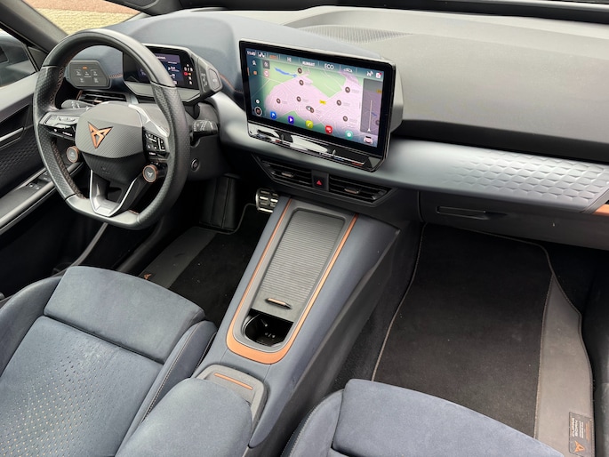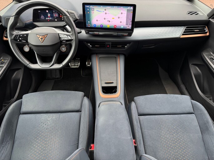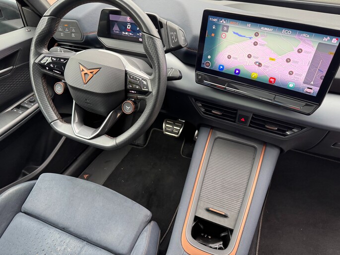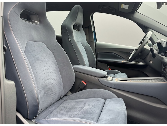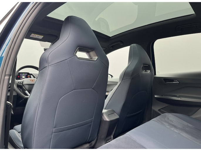Een nieuw tijdperk breekt aan. Emissievrij rijden is niet langer toekomstmuziek met deze elektrische CUPRA Born. Met de combinatie van elektrische aandrijving en automatische transmissie manoeuvreert u soepel door het verkeer. Een krachtige motor geeft deze auto zijn sportieve prestaties. Voorin is het 's winters genieten met de verwarmbare voorstoelen. Deze hebben bovendien een massagefunctie, zodat bestuurder en bijrijder altijd fit en soepel uitstappen. Comfortabel zitten, ook als de rit onstuimig is? Dat kan met de sportstoelen. Overdag een weidse zichthoek en 's avonds het lichtspel in de binnenruimte: dat geeft het glazen panoramadak! Het verwarmbare stuurwiel is een teken van ultieme luxe. Deze voorziening is een topklasse auto waardig. In deze auto profiteert u onder andere ook van: 20 inch lichtmetalen velgen, Full LED koplampen, sportonderstel, adaptief dempingsysteem, geluidsisolerende ramen en in delen neerklapbare achterbank.