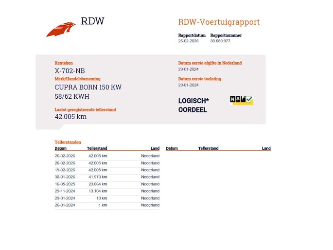Kilometerstand gecontroleerd