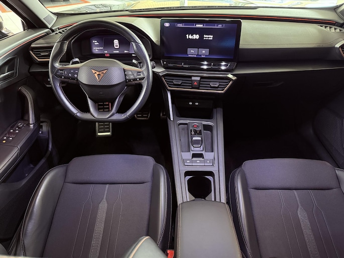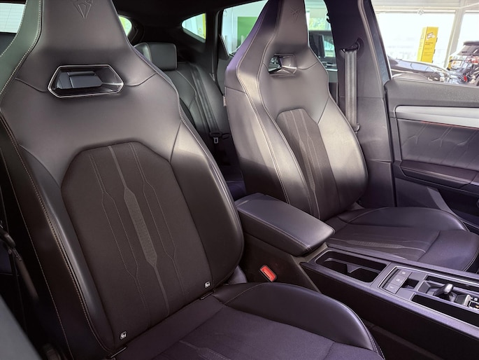 Geavanceerde techniek, waarbij een verbrandingsmotor samenwerkt met een elektromotor, zorgt dat deze auto geweldige prestaties neerzet en toch zuinig is met brandstof. Een praktische extra is de elektrisch bedienbare achterklep die opent en sluit met een druk op de knop. Bij de uitrusting van deze Cupra horen onder meer adaptief onderstel, elektrische handrem met auto-hold functie, zwarte hemelbekleding, in hoogte verstelbare passagiersstoel, donker getint glas achter en in delen neerklapbare achterbank.