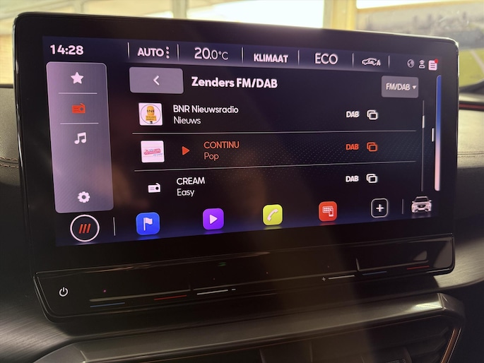 Nooit meer parkeerschade dankzij de achteruitrijcamera. Als u de adaptive cruise control inschakelt, regelt de auto zelf de snelheid en de afstand tot de auto voor u. Geniet van een ruime selectie digitale radiostations met de DAB-ontvanger. Het drukke verkeer eist onderweg al uw aandacht op. Daarom is het goed dat deze Cupra is voorzien van diverse systemen die u assisteren tijdens de rit. Een automatisch inschakelbare verlichting neemt het waar als het donker wordt of gaat schemeren, en schakelt dan automatisch de verlichting in. Op dezelfde manier "ziet" de regensensor de eerste spatjes regen en schakelt dan de ruitenwissers in, en als het harder gaat regenen zet hij de ruitenwissers ook in een snellere stand. Met bluetooth met audiostreaming kunt u muziek draadloos afspelen. Wat u ook in deze auto kunt vinden zijn automatisch dimmende binnenspiegel, usb-aansluiting, centrale deurvergrendeling met afstandsbediening en in hoogte en diepte verstelbaar stuur.