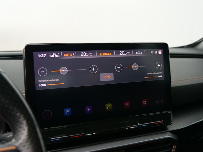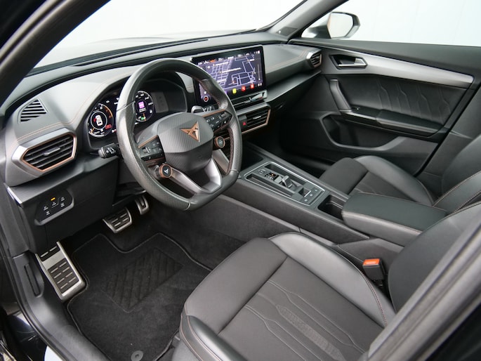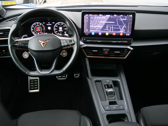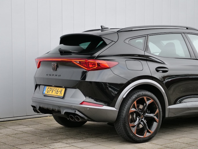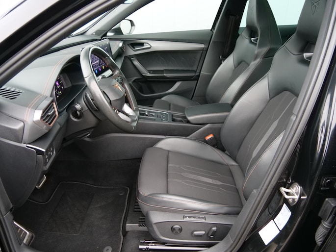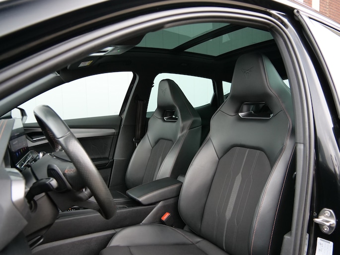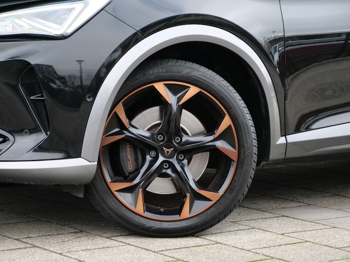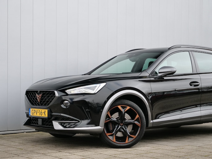 Uw nieuwe auto staat klaar voor vertrek. Stap gerust in, deze CUPRA Formentor heeft 67798 kilometer gelopen en is van het bouwjaar 2021. Trap het gaspedaal in en voel de geweldige acceleratie van deze auto. Voorin is het 's winters genieten met de verwarmbare voorstoelen voor zowel bestuurder als bijrijder. De sportstoelen geven het interieur een super strakke look. Van binnen lijkt het allemaal uitermate ruim dankzij de vrije inval van daglicht via het elektrisch bediende glazen panoramadak. Een praktische extra is de elektrisch bedienbare achterklep die opent en sluit met een druk op de knop. Bij de rijke uitrusting horen ook 19 inch lichtmetalen velgen, LED koplampen, halflederen bekleding, adaptief dempingsysteem, donker getint glas achter en in delen neerklapbare achterbank.