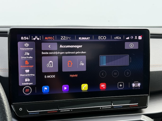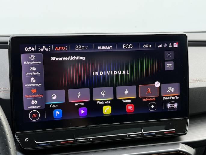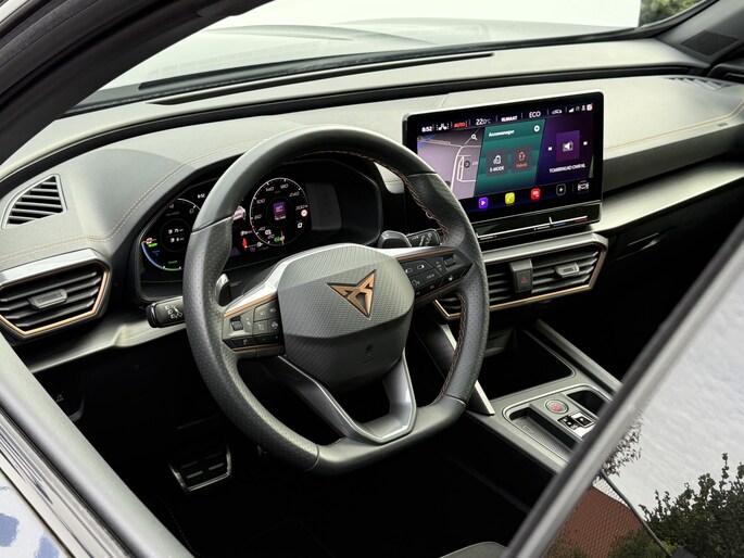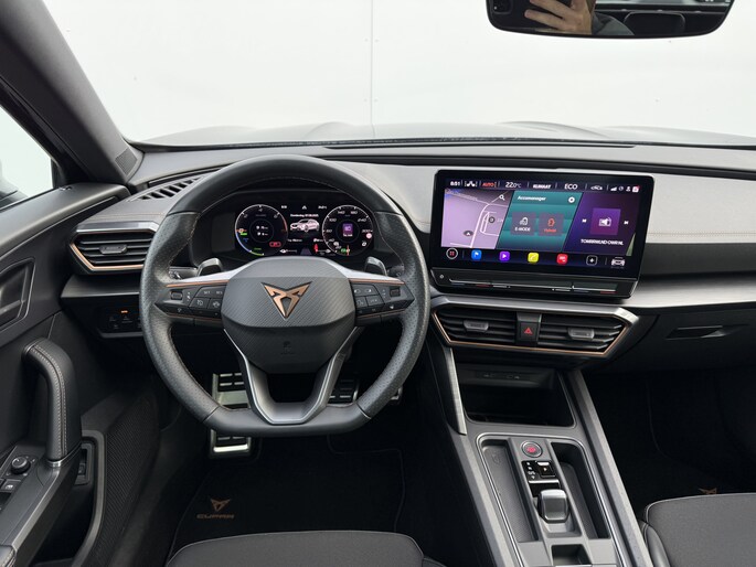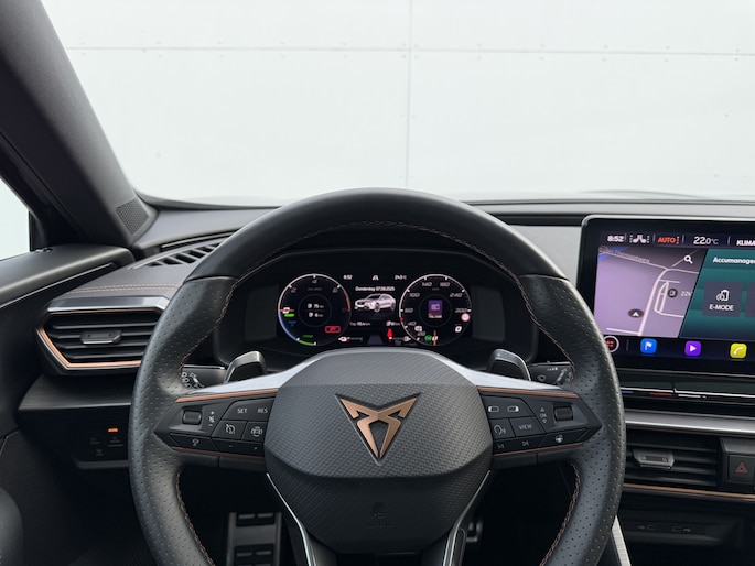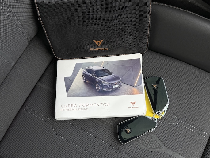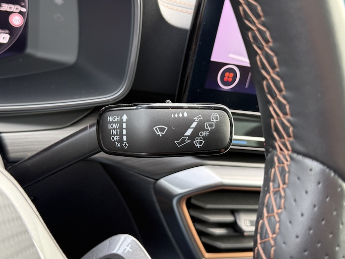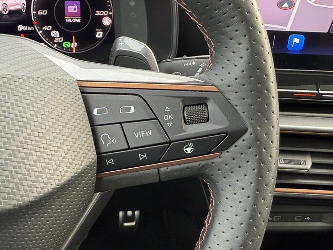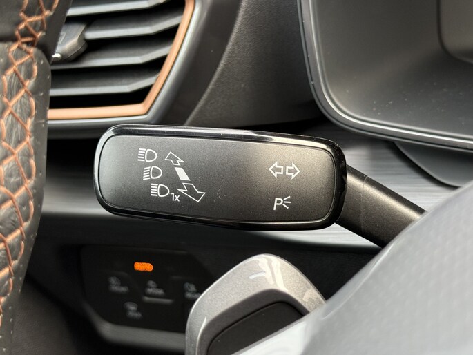 Deze auto is voorzien van innovatieve systemen die u onderweg begeleiden en beschermen. In het instrumentarium kunt u bovendien de verkeersborden zien die u onderweg tegenkomt. Zo helpt deze CUPRA u om veiliger te rijden. Deze CUPRA Formentor is ook behulpzaam als het gaat om een rechte koers. Het Lane-keeping systeem signaleert en corrigeert als u onbedoeld de rijstrooklijnen dreigt te overschrijden. In een noodsituatie waarschuwt forward collision warning bij een dreigende aanrijding met een voorligger. In deze CUPRA vinden we verder een dodehoekdetectie, hill hold functie, vermoeidheidsherkenning, autonoom remsysteem en bandenspanningcontrolesysteem.