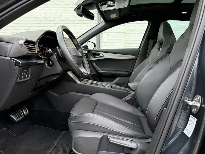 Uitmuntende prestaties, dynamische rijeigenschappen en bakken vol met rijplezier, deze CUPRA Formentor levert het allemaal. Hij is van het bouwjaar 2022 en heeft 19638 kilometer gelopen. Als u een laag brandstofverbruik en goede prestaties belangrijk vindt, dan bent u uitstekend bediend met de viercilinder benzinemotor. Van een cabrio heeft u alleen 's zomers plezier. Maar het elektrisch bediende glazen panorama dak van deze auto betekent het hele jaar genieten. Net zoals u elke dag het gemak ervaart van de elektrisch bedienbare achterklep. Dankzij de stoelverwarming heeft u in deze auto nooit meer last van een koude rug of koude benen. Bij de zeer complete uitrusting van deze auto behoren ook 19 inch lichtmetalen velgen, Full LED koplampen, adaptief dempingsysteem, donker getint glas achter, in delen neerklapbare achterbank en LED-achterlichten.