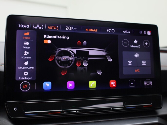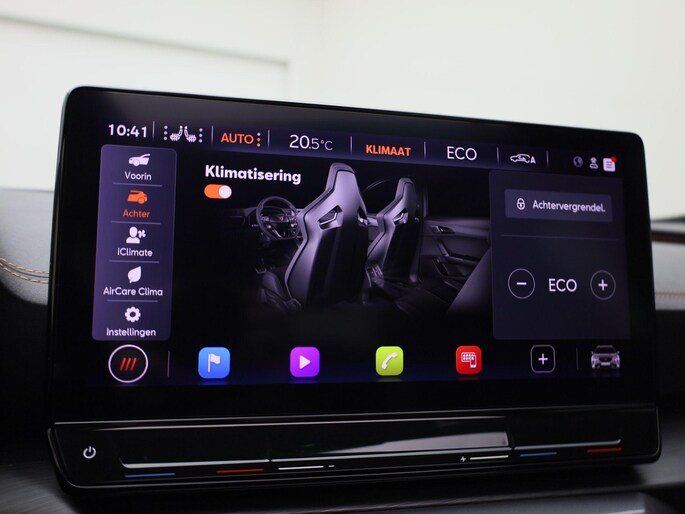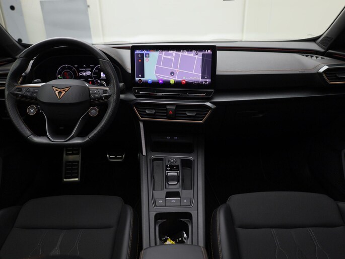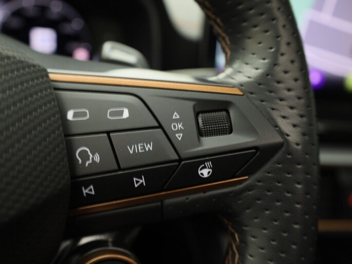 Voor een goed en duidelijk overzicht onderweg is het digitale dashboard uitermate slim ingedeeld. Twijfelen hoeveel ruimte u achter de auto heeft? Met de achteruitrijcamera weet u altijd hoeveel centimeter! Adaptive cruise control houdt de ingestelde snelheid vast en houdt automatisch afstand tot uw voorligger. Na een lange werkdag in de file: daar zit niemand op te wachten. Gelukkig helpt de file assistent een handje. Het radarsysteem meet de ruimte tot de voorligger en bewaakt de juiste afstand. Stilstaan? Dan remt en stopt de auto vanzelf. Navigatie, onderhoudsstatus, vergrendeling, audio... de mogelijkheden van remote services zijn haast oneindig. Ook deze auto laat zich bedienen en analyseren via uw smartphone! U bent in deze CUPRA ook voorzien van dashboard met spraakbediening, full map navigatiesysteem, automatische airconditioning, draadloos opladen, DAB ontvangst en regensensor.