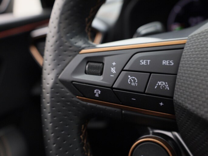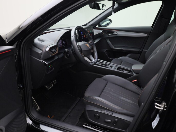 Geavanceerde technische systemen houden tijdens elke rit het verkeer in de gaten en reageren op potentieel gevaarlijke situaties. Bij de veiligheidssystemen van deze CUPRA hoort ook de verkeersbord-detectie. Die leest tijdens het rijden als het ware met u mee en attendeert u op de significante verkeersborden langs en boven de weg. Indien u onbedoeld de rijstrook lijkt te verlaten, reageert het Lane-keeping systeem meteen en corrigeert. Forward collision warning waarschuwt bij een dreigende aanrijding en vermindert de gevolgen van een ongeval. In deze CUPRA vinden we verder een dodehoekdetectie, front assist, hill hold functie, vermoeidheidsherkenning, autonoom remsysteem en bandenspanningcontrolesysteem.