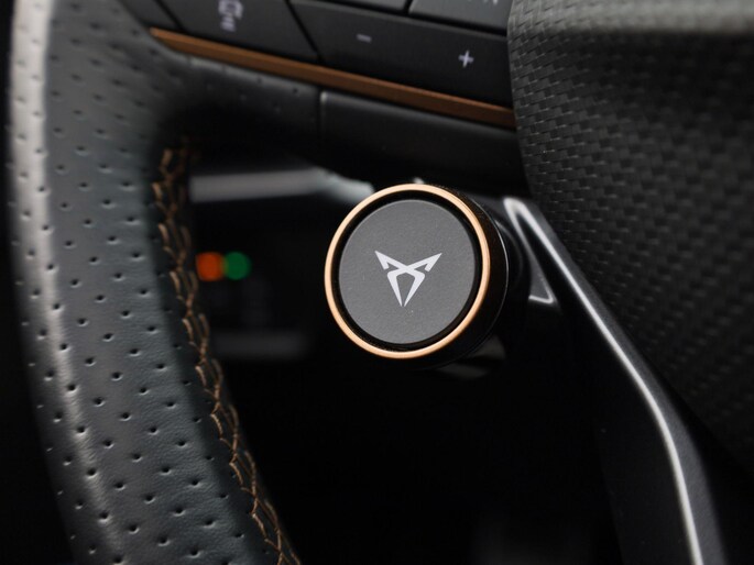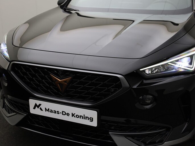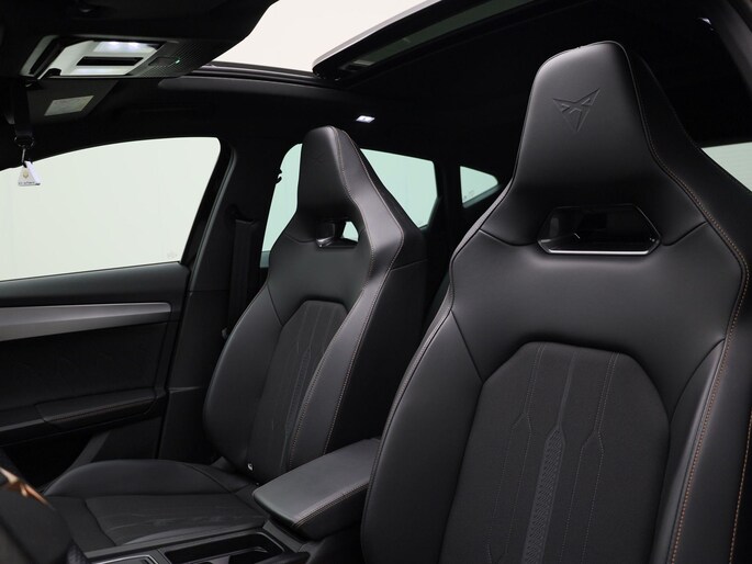 Deze CUPRA Formentor maakt een voortreffelijke indruk. Hiermee mag je gezien worden in de stad én op de weg! Zuinig, slim en milieuverantwoord! Deze hybride auto combineert een verbrandingsmotor en een elektromotor: voordelig rijden en gunstig in onderhoud. In de verwarmbare voorstoelen zitten is elke keer een welkom gevoel. Opvallend zijn de stoere sportstoelen, die zorgen voor een onwrikbare zit in de scherpe bochten. Het interieur baadt in een zee van licht met het elektrische bediende glazen panoramadak. Een handige voorziening op deze auto is de elektrische achterklep die u op afstand kunt openen. Als de 'r' in de maand zit, komt zo'n verwarmd stuurwiel als geroepen! Bij de zeer complete uitrusting van deze auto behoren ook 19 inch lichtmetalen velgen, Full LED koplampen, adaptief dempingsysteem, donker getint glas achter, in delen neerklapbare achterbank en LED-achterlichten.