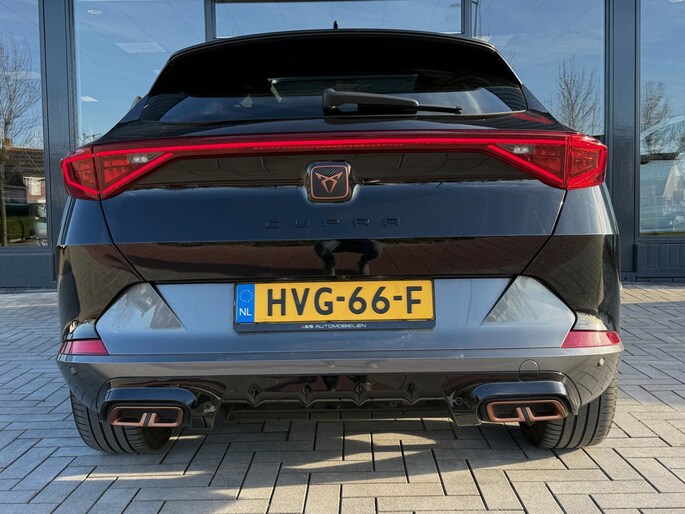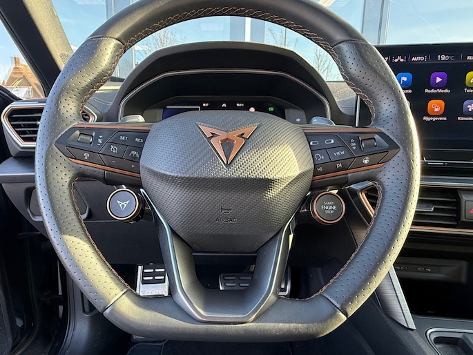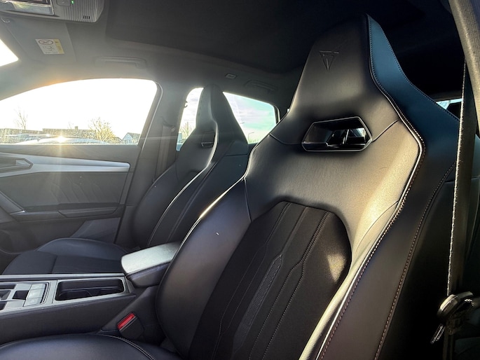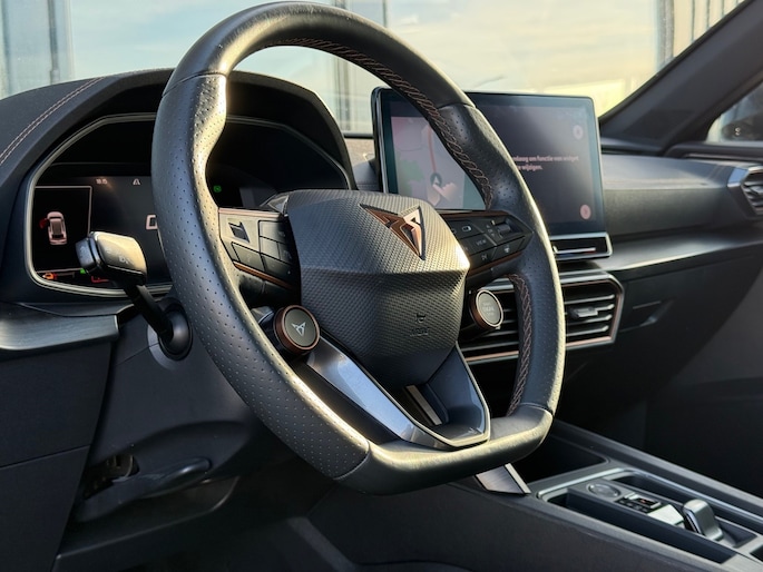 Het rijden met deze Cupra wordt nog meer ontspannen dankzij de innovatieve technieken die onderweg over uw veiligheid waken. In het instrumentarium laat de verkeersborddetectie de actuele verkeersborden zien. Indien u onbedoeld de rijstrook lijkt te verlaten, reageert het Lane-keeping systeem meteen en corrigeert. Forward collision warning waarschuwt bij een dreigende aanrijding met een voorligger. Verder is deze auto uitgerust met dodehoekdetectie, accident avoidance system, hill hold functie, vermoeidheidsherkenning en bandenspanningcontrolesysteem.
