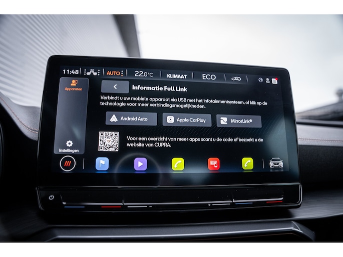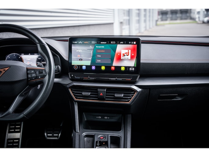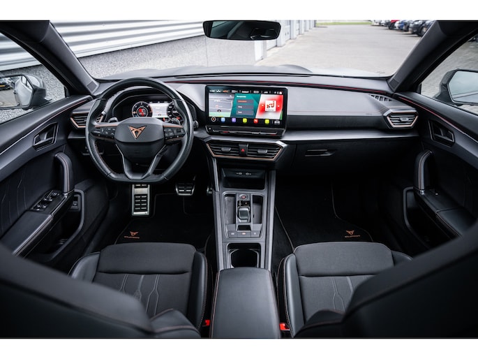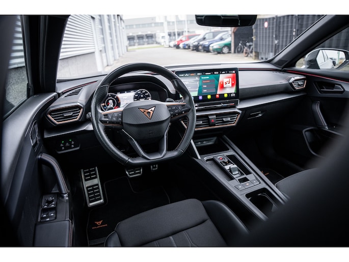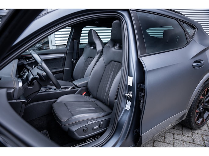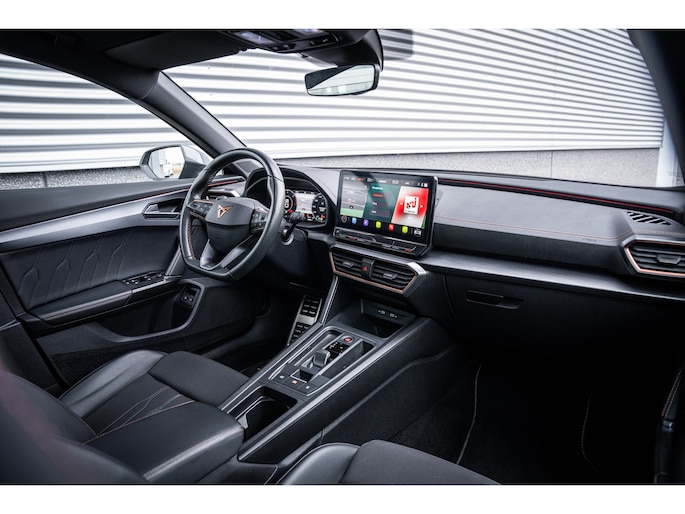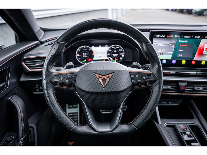 Ontspannen en zorgeloos autorijden, dat doet u met deze CUPRA Formentor. Deze auto komt uit het bouwjaar 2026. Deze CUPRA Formentor heeft in feite twee motoren: een voor benzine en een elektronische. Deze hybride oplossing biedt het beste van beide! De ruime lichtinval door het elektrisch bediende glazen panorama dak zorgt voor een heerlijk ruim gevoel. Met één klik te openen voor frisse lucht en een mild windje in de auto. Dat is gemak en plezier! Overigens is het happy-klik gevoel ook aanwezig bij de elektrisch bedienbare achterklep. 's Winters op pad gaan kan een behoorlijke uitdaging zijn. Daarom is deze CUPRA Formentor voorzien van weldadige verwarmbare voorstoelen. Opwarmen in koude dagen? Pak het verwarmd stuurwiel met beide handen aan! Tot de voorzieningen van deze auto behoren 19 inch lichtmetalen velgen, Full LED koplampen, adaptief dempingsysteem, extra getint glas, in delen neerklapbare achterbank en LED-achterlichten. Praktisch, helder en uitermate handig is het digitale dashboard. Alle functies haarscherp in beeld! Omdat u nou eenmaal geen ogen in uw achterhoofd heeft, is het altijd lastig om achteruit te rijden zonder brokken te maken. De achteruitrijcamera lost dat probleem op. Adaptive cruise control houdt de ingestelde snelheid vast en houdt automatisch afstand tot uw voorligger. De file assistent verzacht het fileleed door automatisch veilig afstand te houden tot de voorligger en zo nodig zelfs te stoppen als de rij tot stilstand komt. Naast handmatige bediening kunt u belangrijke functies met uw stem bedienen dankzij de ingebouwde spraakbediening. Deze CUPRA is voorzien van connected drive services, full map navigatiesysteem, achteropkomend verkeer waarschuwing, automatische airconditioning, draadloos opladen en DAB ontvangst. De nieuwste veiligheidssystemen komen in deze CUPRA Formentor samen. Tijdens de rit hebt u altijd een bijrijder, want de verkeersbord-detectie leest de borden langs de weg en projecteert ze voor u op het instrumentarium. Het Lane-keeping systeem zorgt dat u mooi binnen de lijntjes blijft. Ongemerkt buiten de rijstrook komen is er niet meer bij. Onbedoeld bumperkleven is er niet bij, dankzij de forward collision warning. Die waarschuwt direct als een botsrisico met uw voorligger dreigt. Verder is deze auto uitgerust met dodehoekdetectie, hill hold functie, vermoeidheidsherkenning, autonoom remsysteem en bandenspanningcontrolesysteem. Een proefrit maken met deze CUPRA Formentor? Natuurlijk! Bel even voor een afspraak!