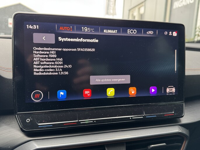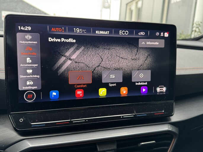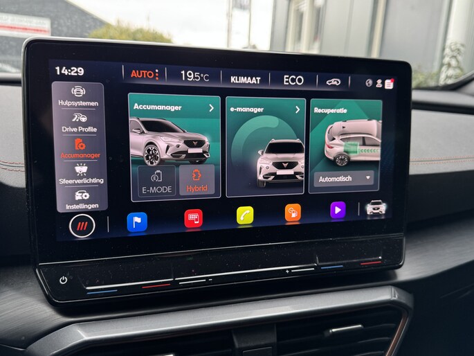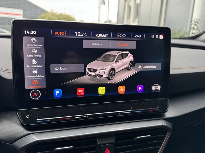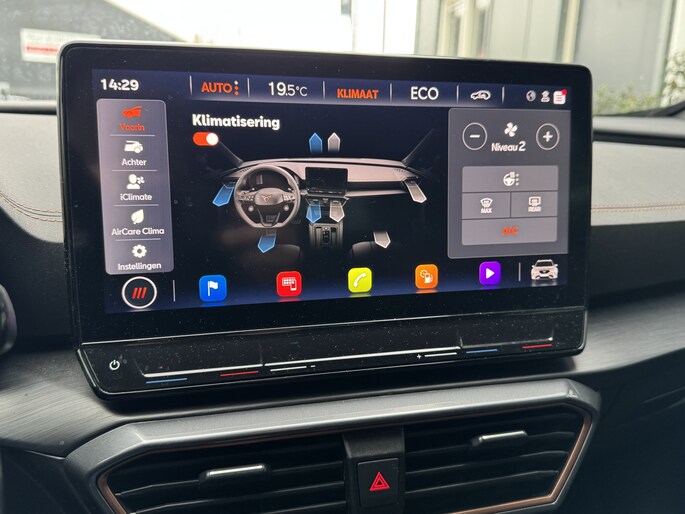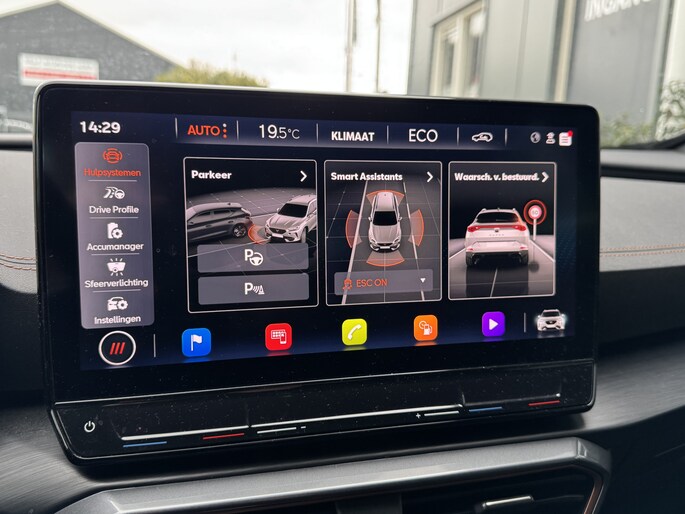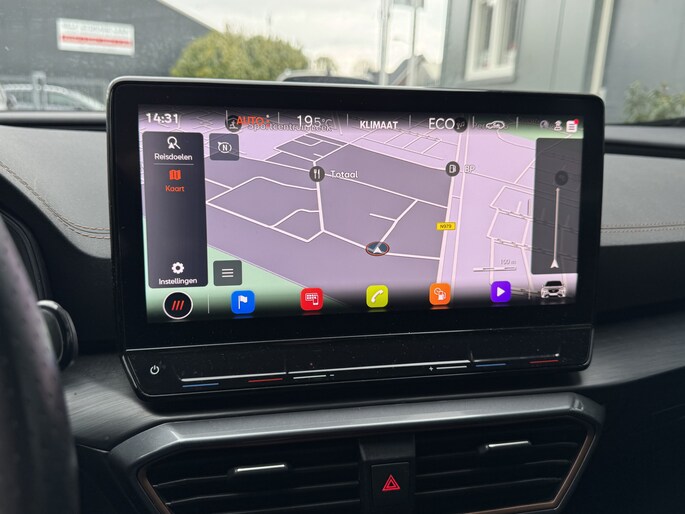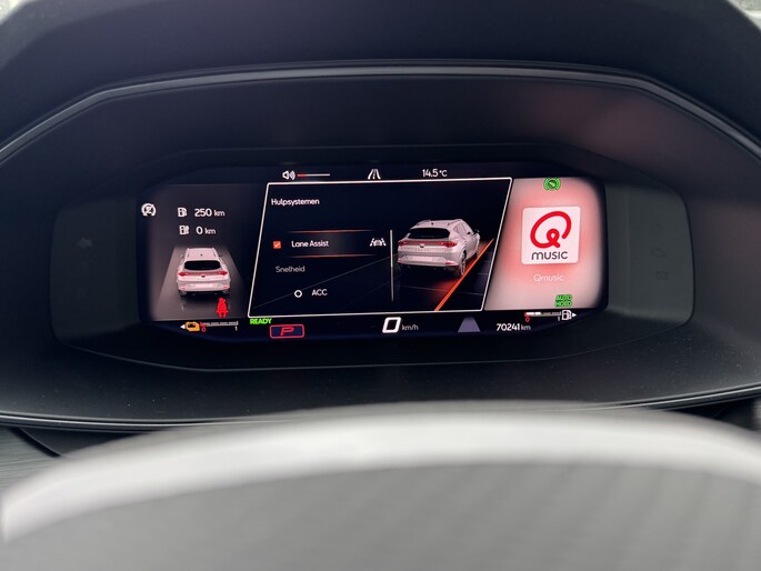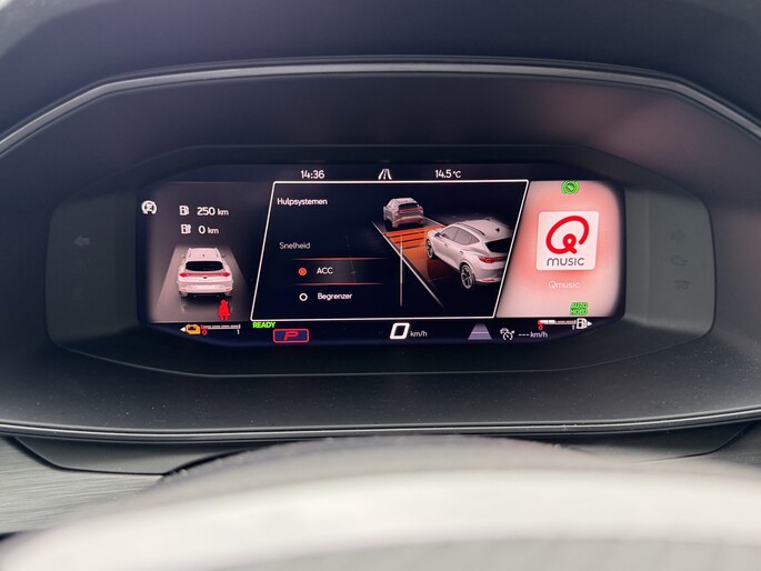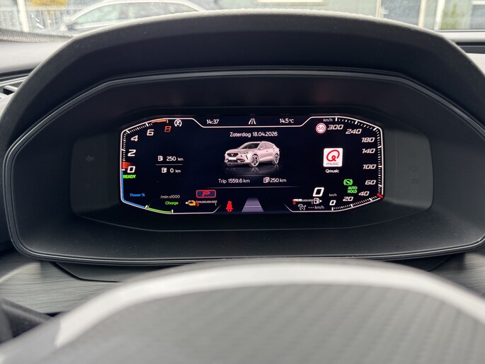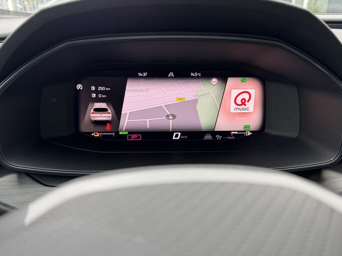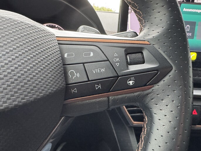 Een gevisualiseerd overzicht van alle belangrijke functies wordt geleverd door het digitale dashboard. Een vergeten muurtje, een verborgen paaltje? Dat gebeurt niet meer, dankzij de achteruitrijcamera. Met adaptive cruise control houdt deze auto automatisch afstand tot uw voorligger. Appen met uw auto? Geen probleem. U kunt van overal contact opnemen, de functies controleren en activeren. U bedient 'm met remote services. Laat u onderweg niet afleiden, de bediening van het audio-installatiesysteem en ook het navigatiesysteem gaat met knoppen op het stuur en met spraak. Natuurlijk is de audio-installatie voorzien van DAB-ontvangst. Deze CUPRA is voorzien van achteropkomend verkeer waarschuwing, automatische airconditioning, draadloos opladen, regensensor, keyless entry en automatisch dimmende binnenspiegel.