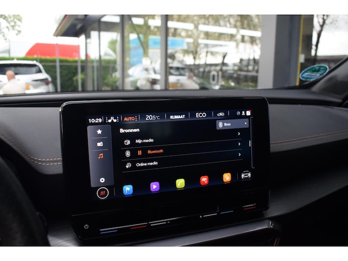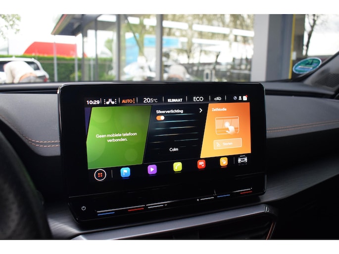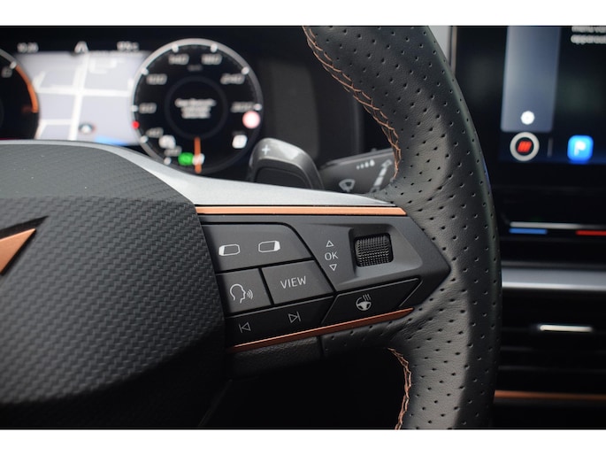 Alle functies die u onderweg nodig heeft, worden permanent geregistreerd en zijn afleesbaar op het digitale dashboard. U ziet geen paaltje meer over het hoofd dankzij de achteruitrijcamera. Als u de adaptive cruise control inschakelt, regelt de auto zelf de snelheid en de afstand tot de auto voor u. De elektrisch inklapbare trekhaak is onzichtbaar gemonteerd. Met een eenvoudige beweging verschijnt de trekhaak zodra u deze nodig hebt. Oliepeil, bandenspanning, sloten en andere functies zijn via een speciale app overal te checken dankzij Connected Services. U bent in deze CUPRA ook voorzien van dashboard met spraakbediening, full map navigatiesysteem, automatische airconditioning, draadloos opladen, DAB ontvangst en regensensor.