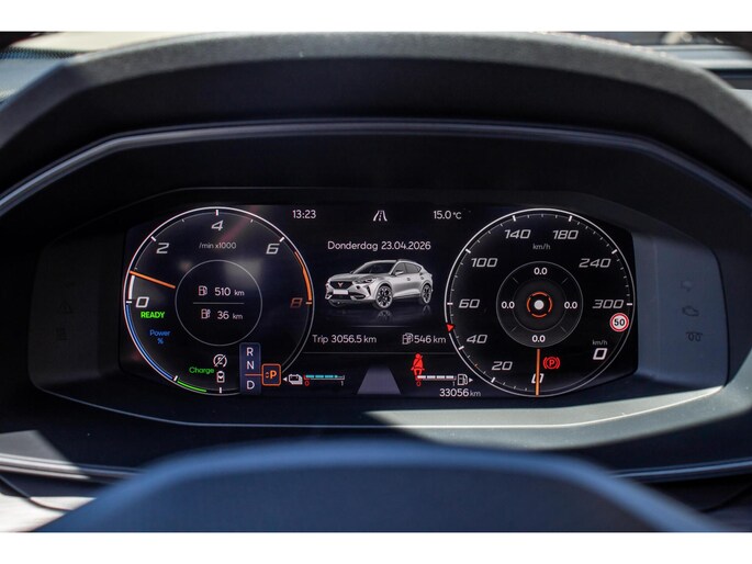 Met een systeemvermogen van 245 pk en 400 Nm koppel sprint deze Formentor in exact 7 seconden naar de 100 km/u. Het is een machine die uitnodigt tot rijden, maar die dankzij de hybride-techniek ook uiterst efficiënt kan zijn. Met een gemiddeld verbruik van 1,5 l op 100 km (bij consequent laden) combineert hij krachtige prestaties met lage gebruikskosten. Dankzij de SOH van 94% weet u zeker dat het accupakket nog in uitstekende conditie verkeert.