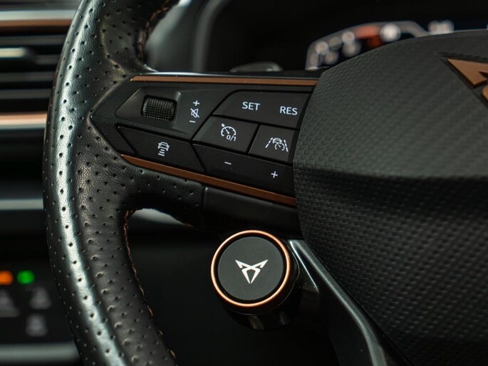Daarnaast is deze Cupra uitgerust met 19” lichtmetalen velgen, LED-koplampen en een volledig digitaal instrumentenpaneel. Dit is een auto die gezien mag worden.