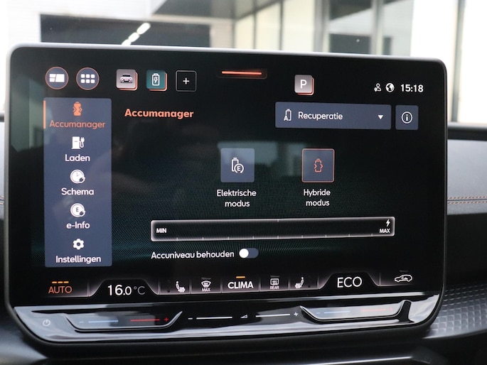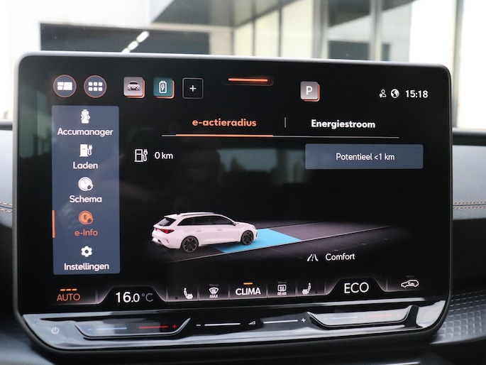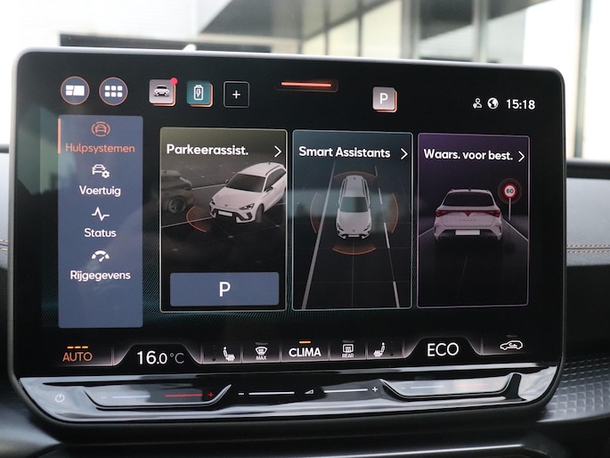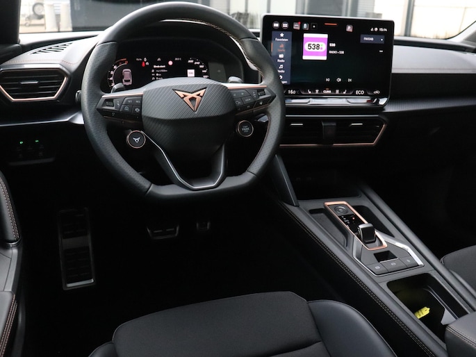 Geavanceerde systemen kunnen tijdens de rit bepaalde taken van je overnemen. Zo kijken er als het ware steeds extra ogen met jou mee, zodat je tijdig kunt reageren op noodsituaties. De camera van de verkeersborddetectie herkent verschillende soorten verkeersborden en toont deze op het dashboard. Het Lane-keeping systeem let constant op en waarschuwt of corrigeert als je onoplettend over de lijnen van de rijstrook gaat. Ook als jouw aandacht even verslapt, blijft de forward collision warning bij de wekker. Dreigt er een botsing met een voor- of tegenligger, dan waarschuwt het systeem direct. In deze CUPRA vinden we verder een hill hold functie, vermoeidheidsherkenning, autonoom remsysteem en bandenspanningcontrolesysteem.