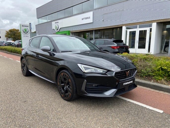 Goede prestaties, aantrekkelijke extra's en perfect onderhouden: deze CUPRA Leon stelt zich graag aan je voor! Met deze motor haal jij veel kilometers uit een tank brandstof. Met zijn lederen bekleding is deze CUPRA comfortabel en stijlvol. Regen, wind, hagel, sneeuw? Als het buiten guur is, doet de stoelverwarming z'n weldadige werk! De verlichting van de koplampen geeft het gevoel dat het altijd dag is. De slimme matrix LED-technologie past zich aan bij tegenliggers, zonder verlies van lichtkwaliteit. Tot de uitrusting van deze CUPRA behoren ook 19 inch lichtmetalen velgen, adaptief dempingsysteem, donker getint glas achter, in delen neerklapbare achterbank, LED-achterlichten en verstelbare lendensteunen.