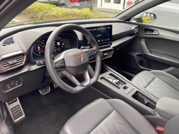 Overzicht, informatie en functionaliteit: dat biedt het digitale dashboard. Omdat je nou eenmaal geen ogen in je achterhoofd hebt, is het altijd lastig om achteruit te rijden zonder brokken te maken. De achteruitrijcamera lost dat probleem op. Adaptive cruise control houdt de ingestelde snelheid vast en houdt afstand tot het voertuig voor je. Loopt het verkeer onderweg vast, schakel dan de file assistent in en laat het systeem zorgen voor de juiste afstand bij stilstaan en rijden. In deze auto kun jij de belangrijkste functies bedienen met jouw stem. Ook is de CUPRA uitgerust met: connected drive services, full map navigatiesysteem, WIFI-hotspot, achteropkomend verkeer waarschuwing, electronic climate control en schakelpaddles aan het stuur.