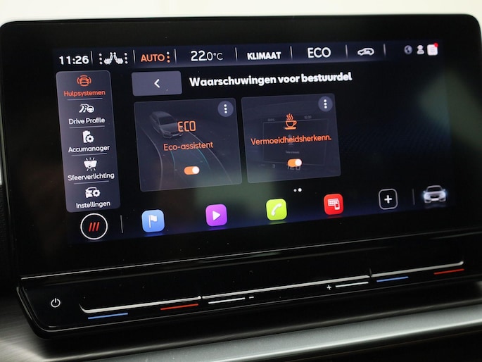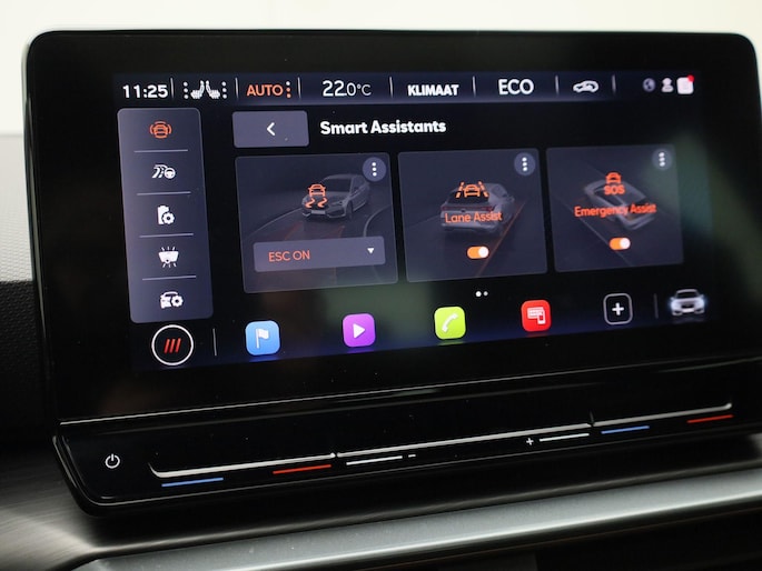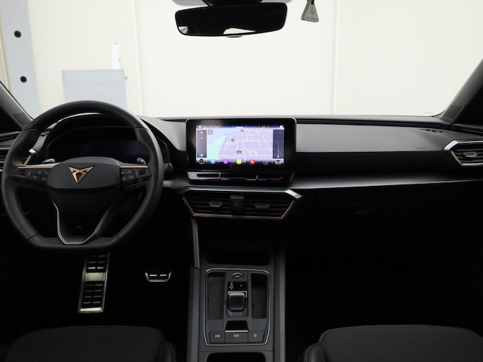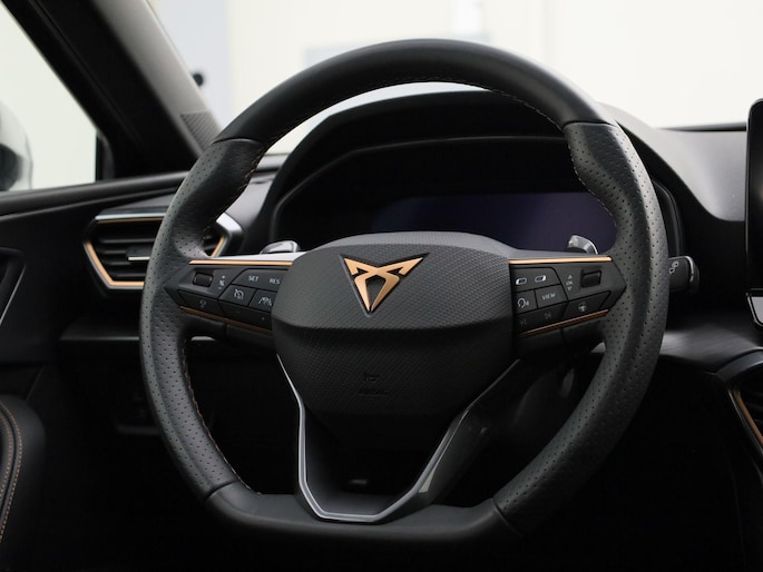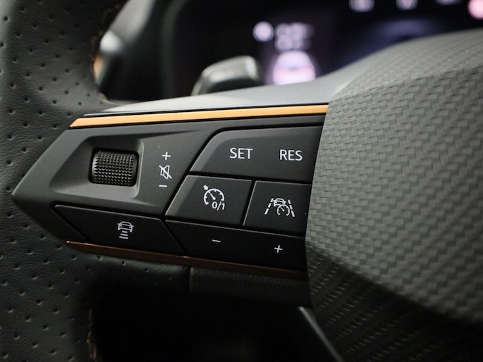 Deze CUPRA is voorzien van verschillende intelligente veiligheidsvoorzieningen. Ze kijken tijdens het rijden als het ware met u mee, ze signaleren potentieel gevaarlijke situaties en in een aantal gevallen kunnen ze ook ingrijpen. In het instrumentarium kunt u bovendien de verkeersborden zien die u onderweg tegenkomt. Zo helpt deze CUPRA u om veiliger te rijden. Ongemerkt buiten de rijstrook raken? Nee hoor, het Lane-keeping systeem waarschuwt en corrigeert. Kop-staartbotsingen vormen een belangrijk deel van de meest voorkomende aanrijdingen. De forward collision warning van deze auto voorkomt zulke botsingen geheel of reduceert de ernst van de schade aanzienlijk. De veiligheid van deze auto wordt verder verhoogd door dodehoekdetectie, front assist, hill hold functie, vermoeidheidsherkenning, autonoom remsysteem en bandenspanningcontrolesysteem.