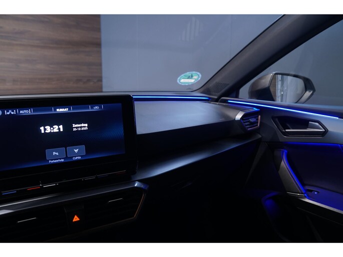 Keyless start + entry | Parkeercamera | Sfeerverlichting | Soundgenerator in Cupra modus | Cupra remklauwen | Sportstoelen | Stoelverwarming | Stuurwielverwarming | Climate control voor + achter | Full led verlichting | Virtuele cockpit | Parkeersensoren achter | Privacy glas | Sportstuurwiel met schakelmogelijkheid | DAB-radio | Apple Carplay | Android Auto | Automatische verlichting | Binnenspiegel automatisch dimmend | Buitenspiegels elektrisch verstel-en inklapbaar | Voorstoelen in hoogte verstelbaar | Laadkabel | Etc.