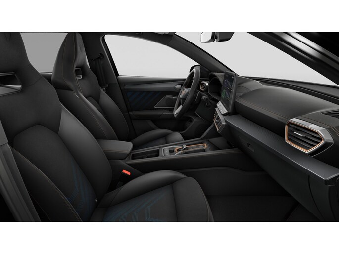Interieur: Bekleding Dinamica en CUPRA logo in hoofdsteun
