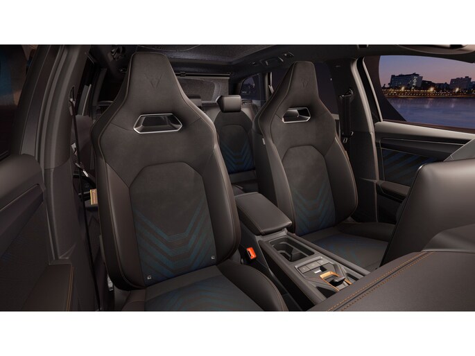 Interieur: Bekleding Dinamica en CUPRA logo in hoofdsteun