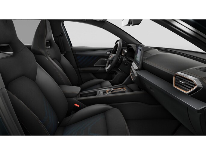 Interieur: Bekleding Dinamica en CUPRA logo in hoofdsteun