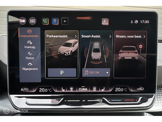 Met de nieuwste technologieën aan boord is deze CUPRA in staat om zelf te reageren op potentieel gevaarlijke situaties op de weg. Wat deze auto ook kan, is lezen. Hij 'leest' voor u de verkeersborden tijdens de rit en attendeert u erop door ze op het dashboard te projecteren. Het Lane-keeping systeem let constant op en waarschuwt of corrigeert als u onoplettend over de lijnen van de rijstrook gaat. Forward collision warning waarschuwt bij een dreigende aanrijding en vermindert de gevolgen van een ongeval. De auto is ook uitgerust met hill hold functie, vermoeidheidsherkenning, autonoom remsysteem en bandenspanningcontrolesysteem.
