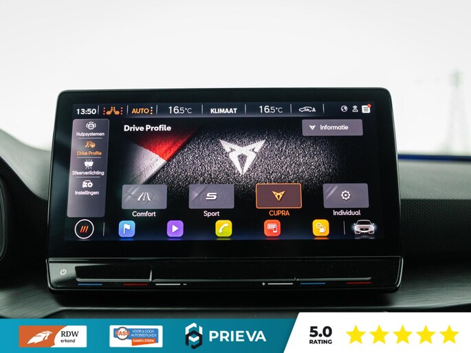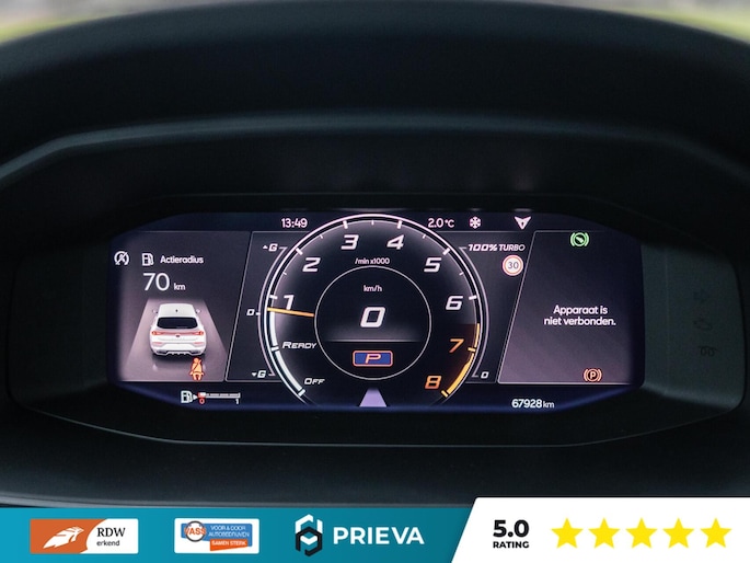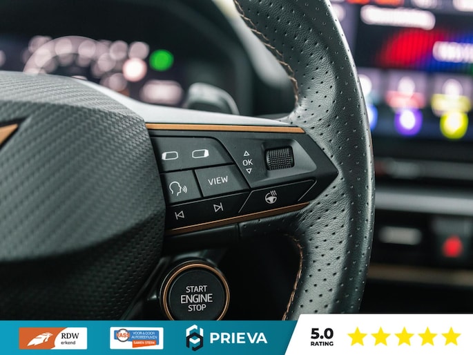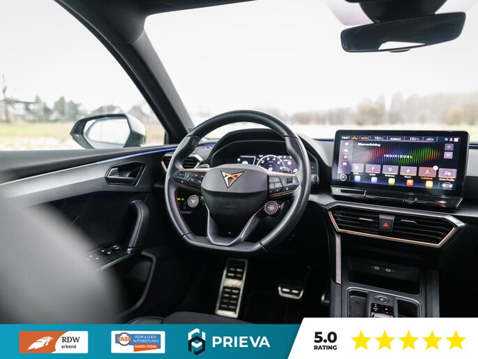 Ook op technologisch vlak is deze CUPRA zeer compleet uitgerust. Denk aan Adaptive Cruise Control, lane assist, achteruitrijcamera, navigatiesysteem en een high-performance audiosysteem dat perfect is afgestemd op de akoestiek van de auto. Alles is gericht op comfort, veiligheid en rijplezier.