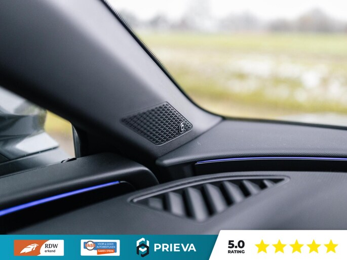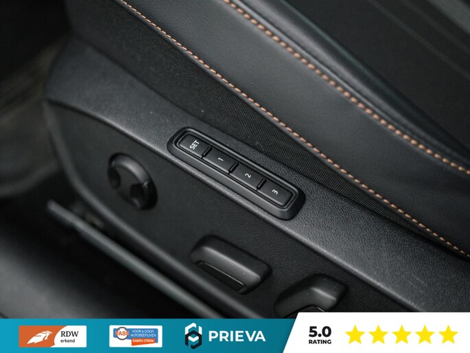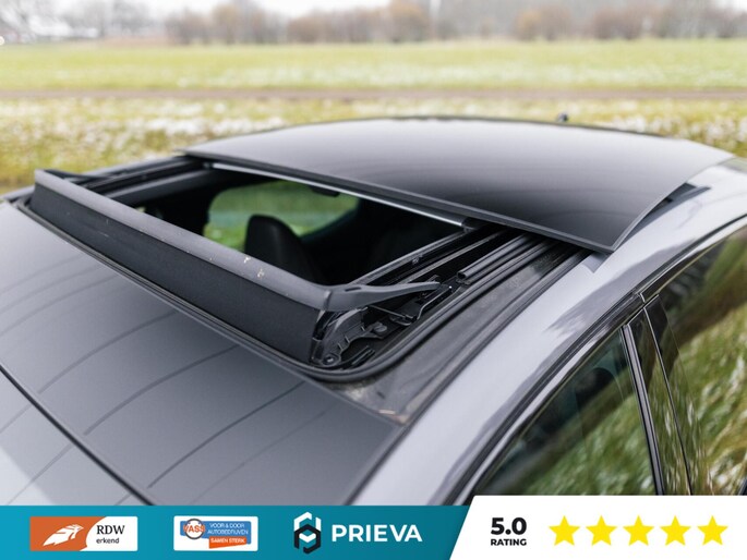 Het interieur straalt luxe uit met een combinatie van leder en stof, elektrisch verstelbare stoelen met geheugenfunctie en een elektrisch bediend glazen panoramadak dat zorgt voor extra licht en ruimte. Het digitale dashboard voorziet u continu van heldere en actuele rij-informatie.