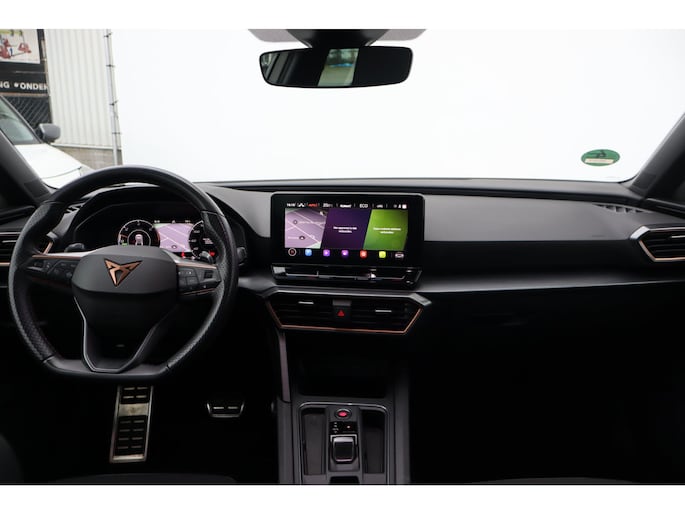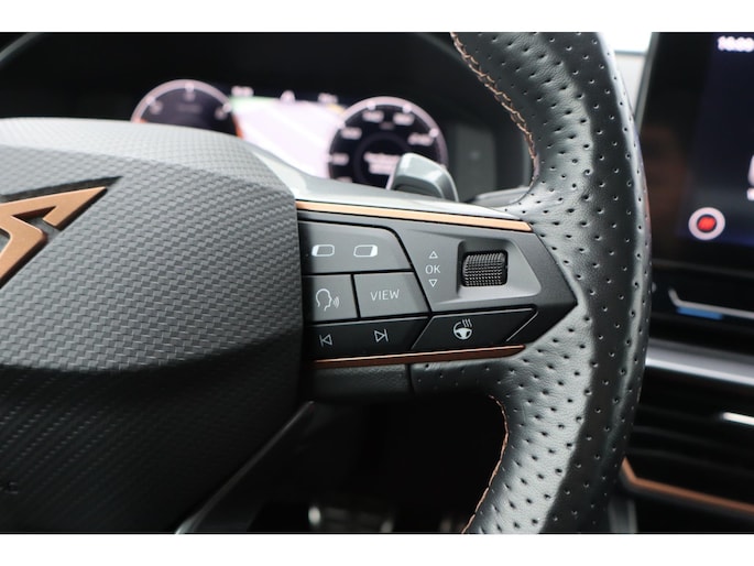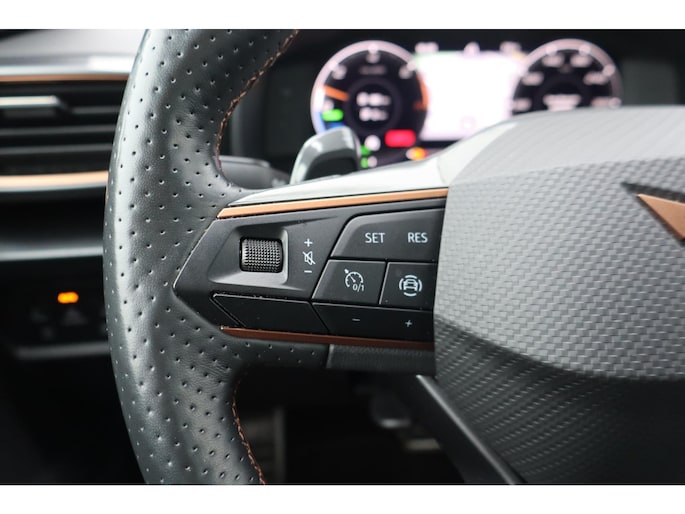 Met het digitale dashboard in deze auto kunt u de interface van uw cockpit personaliseren. Bij het inparkeren hoeft u het laatste stukje niet te gokken: de achteruitrijcamera kijkt voor u uit. Adaptive cruise control is veilig en comfortabel. De snelheidsregelaar houdt automatisch afstand tot het voertuig dat voor u rijdt. Spraaksturing luistert naar uw stem en bedient de belangrijkste voertuigfuncties. Appen met uw auto? Geen probleem. U kunt van overal contact opnemen, de functies controleren en activeren. U bedient 'm met remote services. U bent in deze Cupra ook voorzien van navigatiesysteem, electronic climate control, draadloos opladen, DAB ontvangst, regensensor en keyless entry.