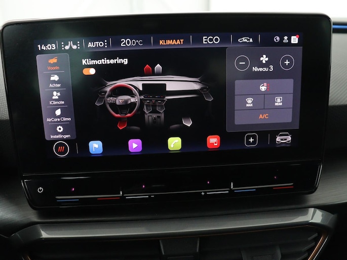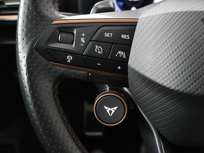 In de CUPRA Leon heeft uw veiligheid en die van uw omgeving prioriteit. De camera van de verkeersborddetectie herkent verschillende soorten verkeersborden en toont deze op het dashboard. Ongemerkt buiten de rijstrook raken? Nee hoor, het Lane-keeping systeem waarschuwt en corrigeert. Op een kop-staartbotsing zit niemand te wachten. Daarom is de forward collision warning onderweg constant alert en berekent via een sensor de veilige afstand tot voorliggers. Verder is deze auto uitgerust met dodehoekdetectie, hill hold functie, vermoeidheidsherkenning, autonoom remsysteem en bandenspanningcontrolesysteem.