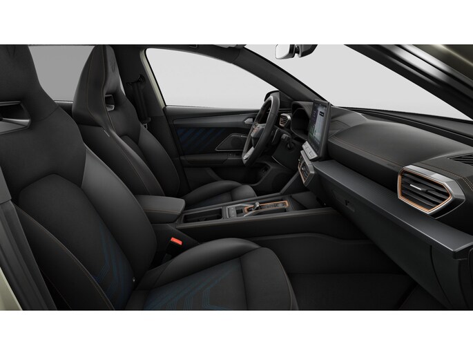 Interieur: Bekleding Dinamica en CUPRA logo in hoofdsteun