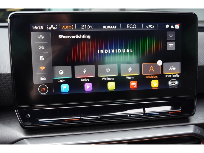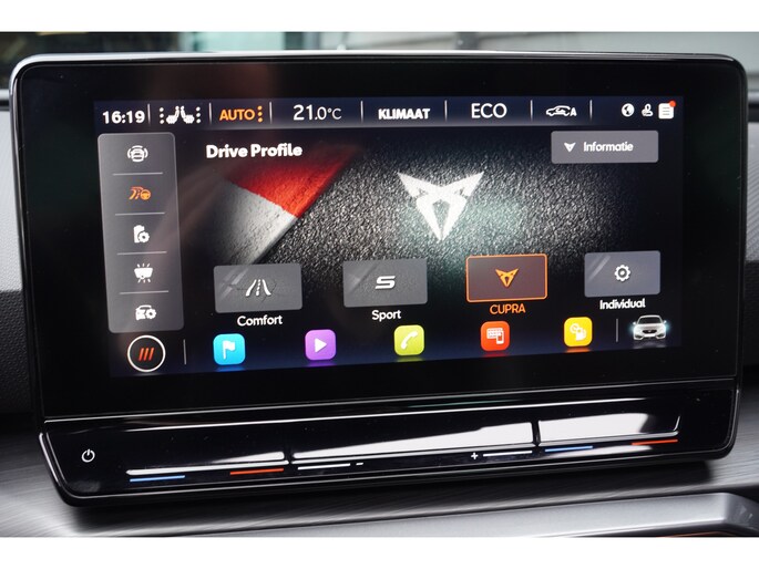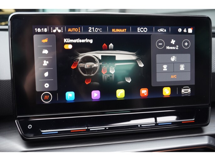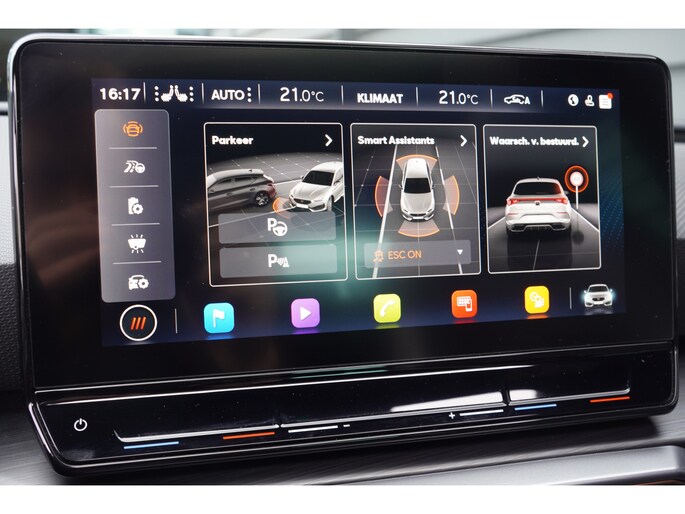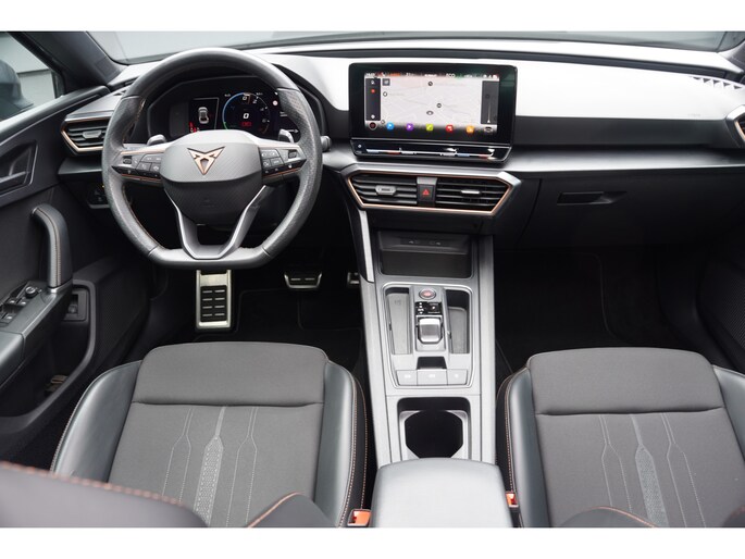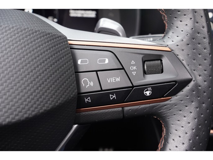 Voor een goed en duidelijk overzicht onderweg is het digitale dashboard uitermate slim ingedeeld. Ongelukken of parkeerschade? Dat gebeurt u niet meer, met de achteruitrijcamera. Adaptive cruise control is veilig en comfortabel. De snelheidsregelaar houdt automatisch afstand tot het voertuig dat voor u rijdt. De ingebouwde file assistent is een echte helper als het vaststaat onderweg. Het systeem meet ruimte tot de auto vóór u permanent en activeert zelfs de remmen als uw voorligger stopt. Deze CUPRA Leon is voorzien van remote services. Via uw smartphone bedient u diverse functies ook op afstand en krijgt u informatie over de status van uw auto. Met dashboard met spraakbediening, full map navigatiesysteem, WIFI-hotspot, electronic climate control, draadloos opladen en DAB ontvangst is deze auto helemaal compleet.