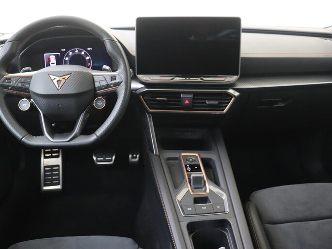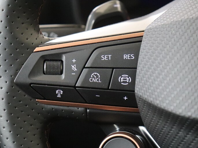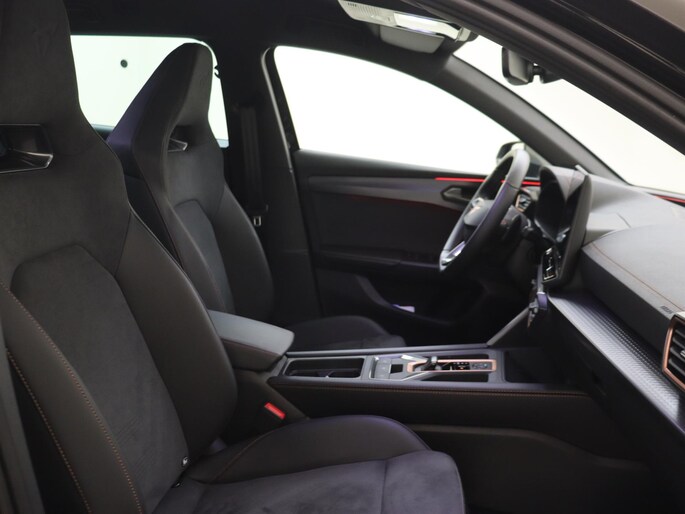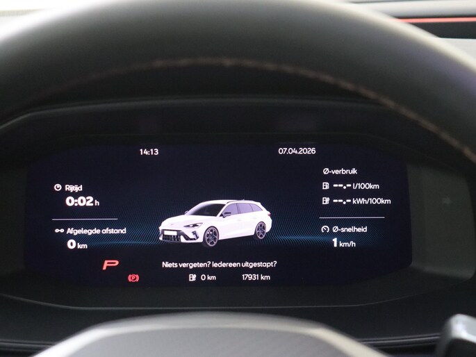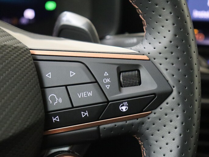 Deze CUPRA biedt u niet alleen comfort en rijplezier, maar ook veiligheid. Actieve veiligheidssystemen houden voor u de weg in de gaten en reageren op onvoorziene situaties voordat u dat kunt. U rijdt ook veiliger omdat deze auto voor u de verkeersborden langs de weg kan lezen. De belangrijkste borden worden op uw instrumentarium geprojecteerd, zodat u ze niet kunt missen. Het Lane-keeping systeem zorgt dat u mooi binnen de lijntjes blijft. Ongemerkt buiten de rijstrook komen is er niet meer bij. De forward collision warning geeft een botswaarschuwing als een aanrijding dreigt met een voorligger. U bent mede dankzij dodehoekdetectie, hill hold functie, vermoeidheidsherkenning, autonoom remsysteem en bandenspanningcontrolesysteem steeds veilig onderweg.