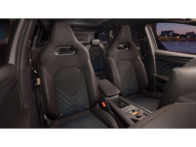 Interieur: Bekleding Dinamica en CUPRA logo in hoofdsteun