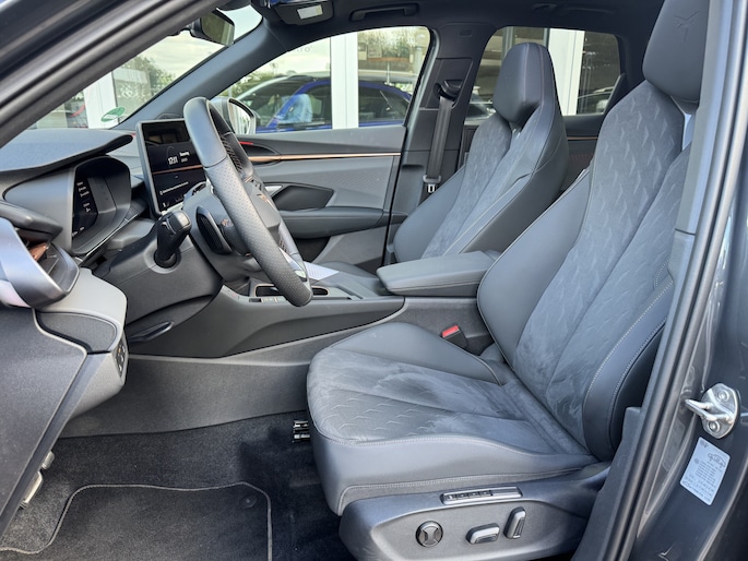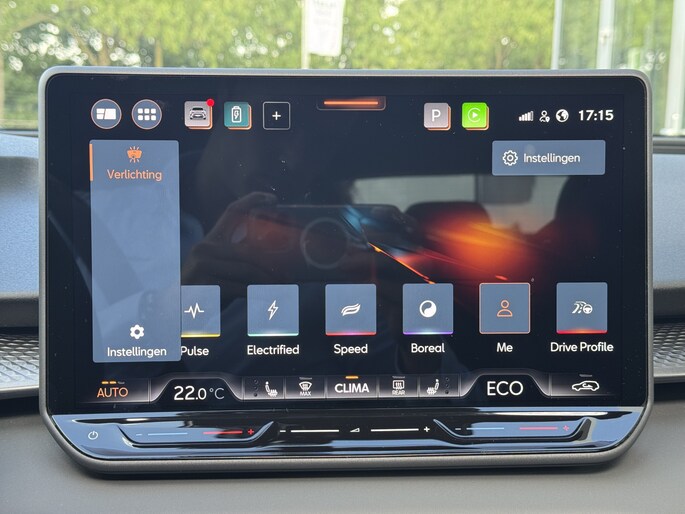 Dat u het milieu wilt sparen, wil nog niet zeggen dat u aan rijcomfort moet inleveren. De CUPRA Terramar is een comfortabele en ruime hybride auto. De hybride motor combineert een elektromotor met een verbrandingsmotor. U kunt dus kiezen. Essentiële functies activeren gaat met één druk op de knop: bij het elektrisch bediende glazen panorama dak én de elektrisch bedienbare achterklep. Tijdens gure dagen is het prettig zitten in de verwarmbare voorstoelen. Dankzij de matrix LED-verlichting geven de koplampen ook in het donker daglicht. Verder is de CUPRA uitgerust met: adaptief dempingsysteem, trailer assistent, donker getint glas achter, in delen neerklapbare achterbank, LED-achterlichten en verstelbare lendensteunen.