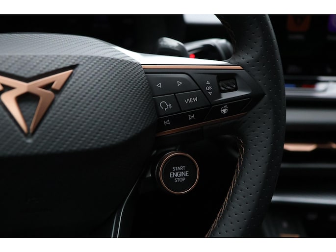 Deze auto is voorzien van innovatieve systemen die u onderweg begeleiden en beschermen. Blijf voor u kijken, terwijl u de rij-informatie afleest op uw voorruit. Daarvoor zorgt de head-up display! Onderweg fungeert de verkeersbord-detectie als het ware als uw bijrijder en attendeert u op de verkeersborden langs de weg. Mooi binnen de lijnen van de rijstrook blijven? Het Lane-keeping systeem helpt altijd een handje. In deze Cupra vinden we verder een dodehoekdetectie, accident avoidance system, hill hold functie, vermoeidheidsherkenning, frontale botsbescherming en bandenspanningcontrolesysteem.